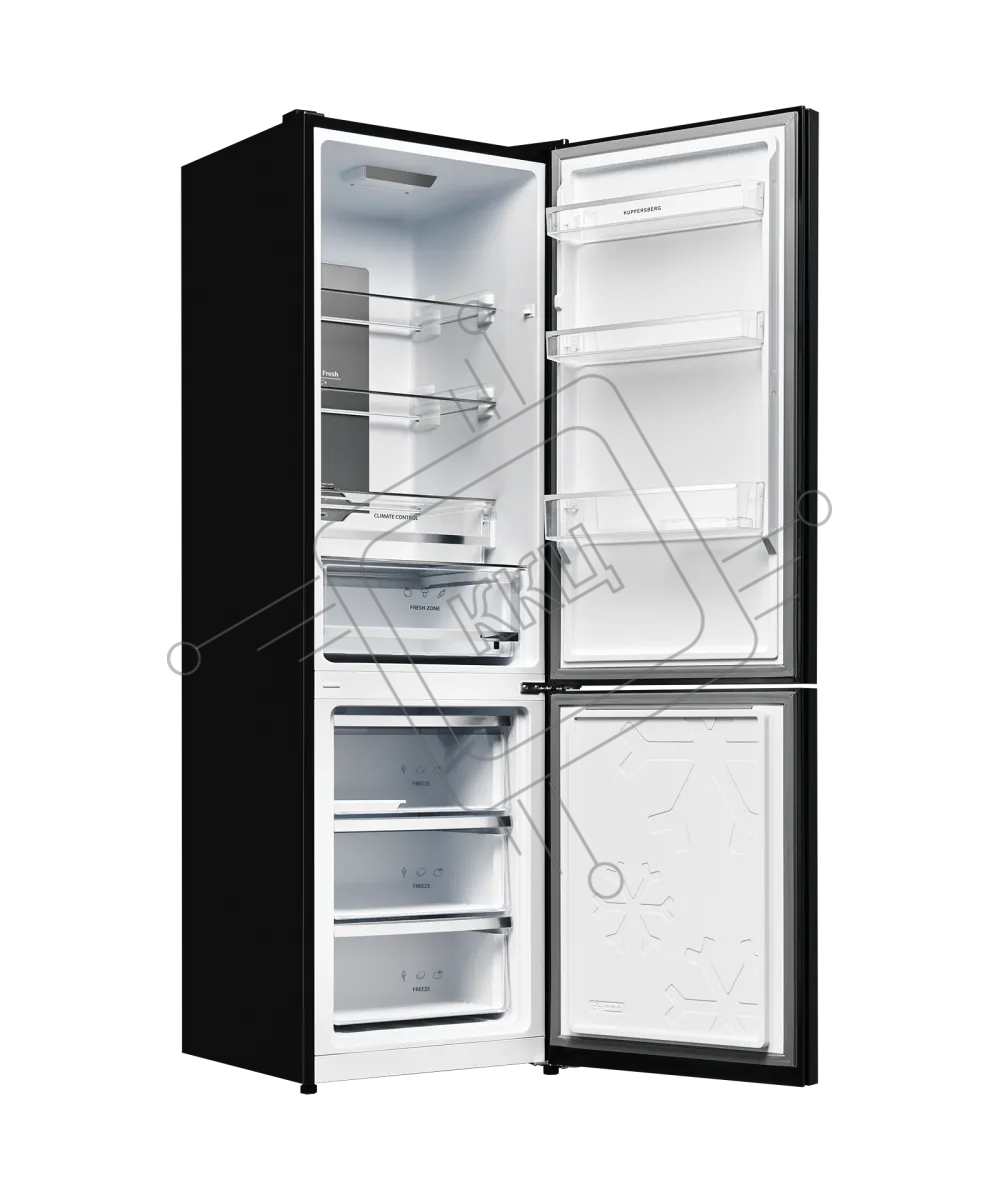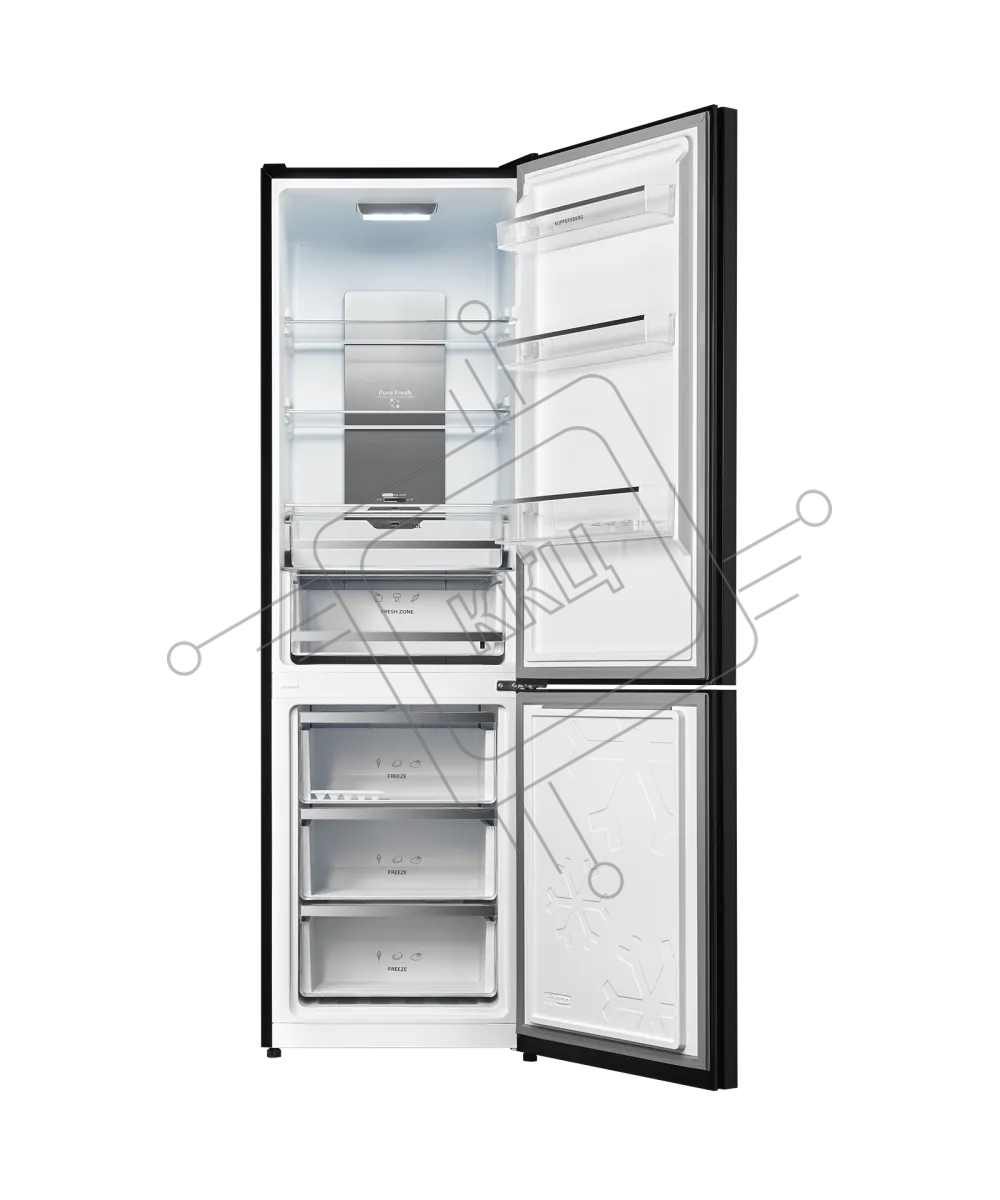 Холодильник Kuppersberg RFCN 2013 BG черное стекло двухкамерный 240/95л морозилка снизу, No Frost