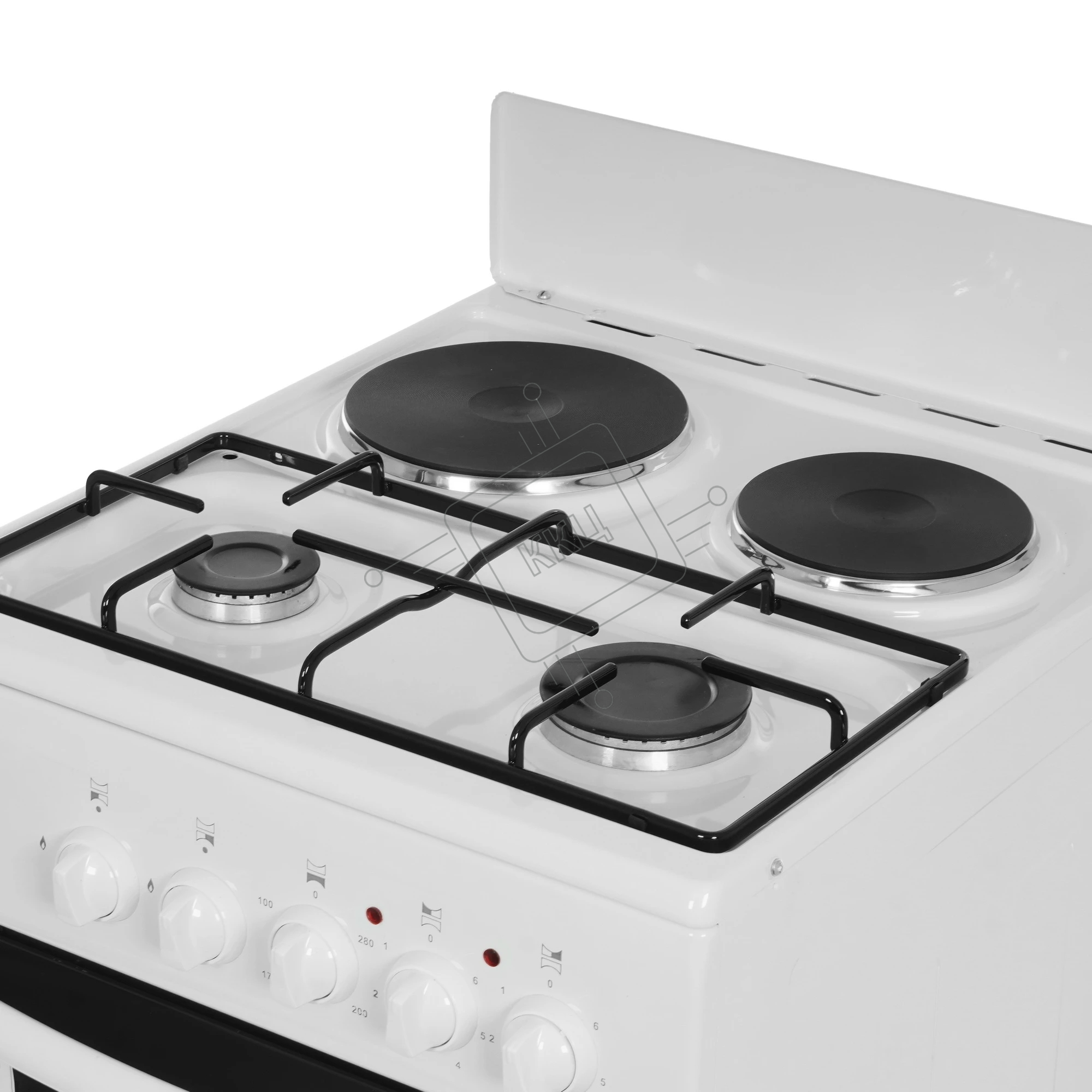 Плита комбинированная Flama RK 2201 W белый, конфорок 2 газовых и 2 электрических, духовка 50 л, 50 см x 85 см x 54 см