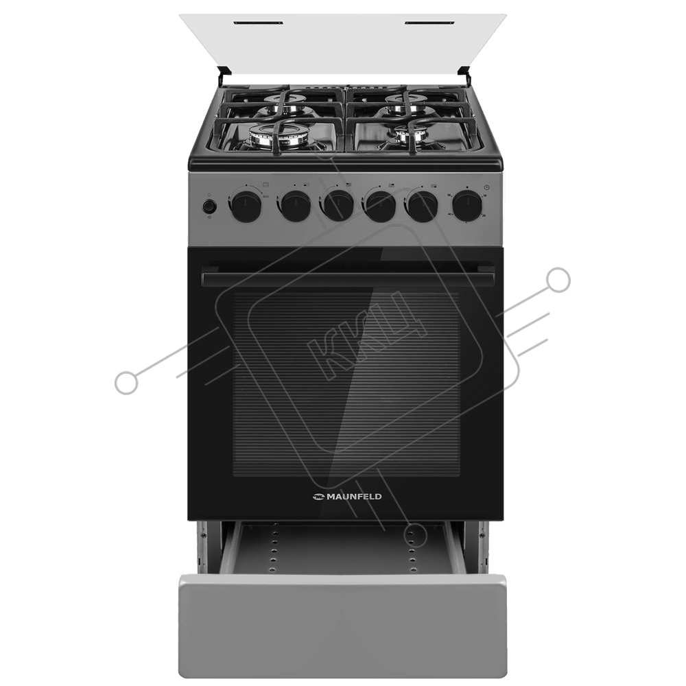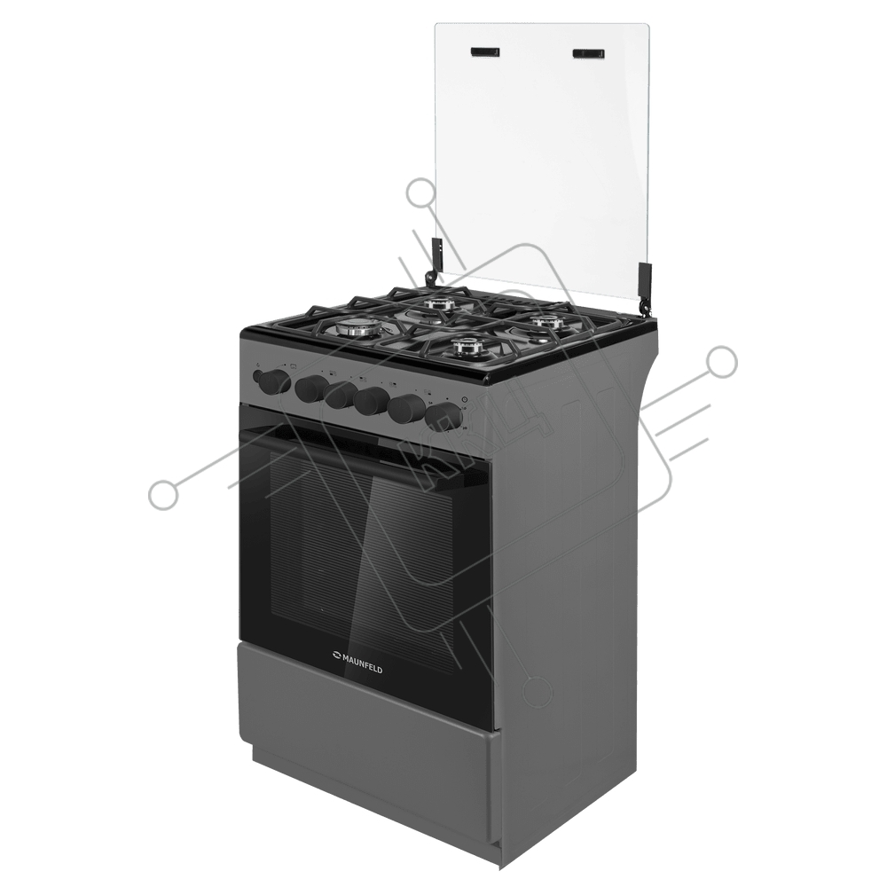 Плита газовая Maunfeld MGC50GCGR08D серый, конфорок 4 шт, духовка 59 л, 50 см x 89 см x 65 см