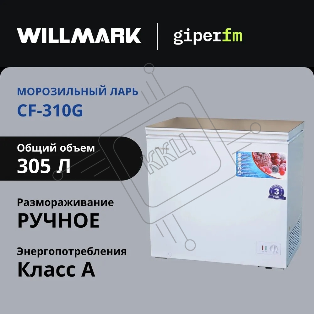 Морозильный ларь Willmark CF-310G белый стеклянная крышка, 305л