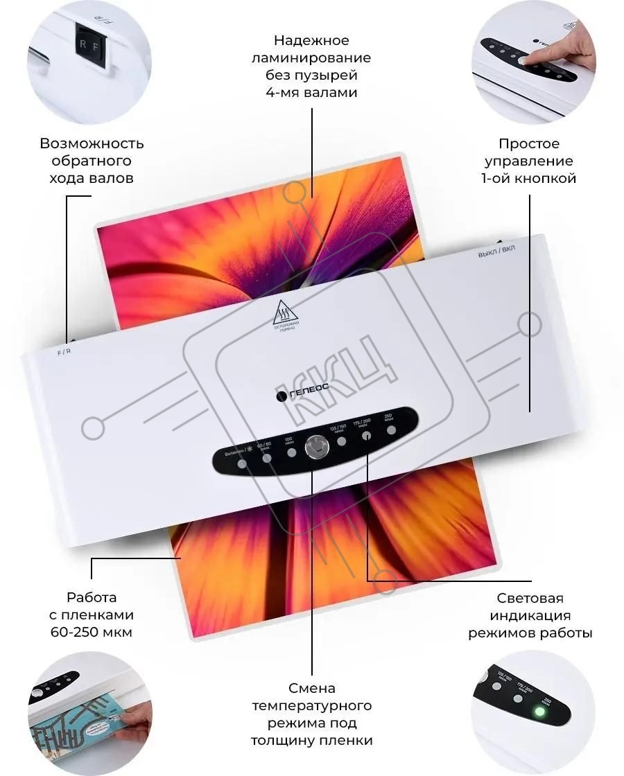 Ламинатор Гелеос ЛМА44В белый/черный A4 (60-250мкм) 30 см/мин (4 вал.) хол.лам. лам.фото реверс