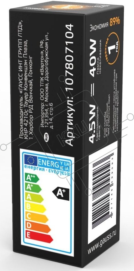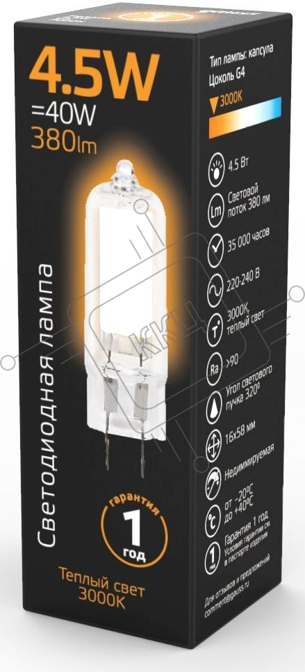 Лампа cветодиодная Gauss LED G4 AC220-240V 4.5W 3000K Glass 1/10/200