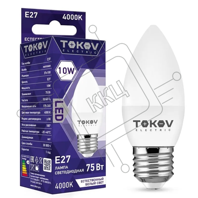 Лампа светодиодная TOKOV ELECTRIC 10Вт С37 4000К Е27 176-264В