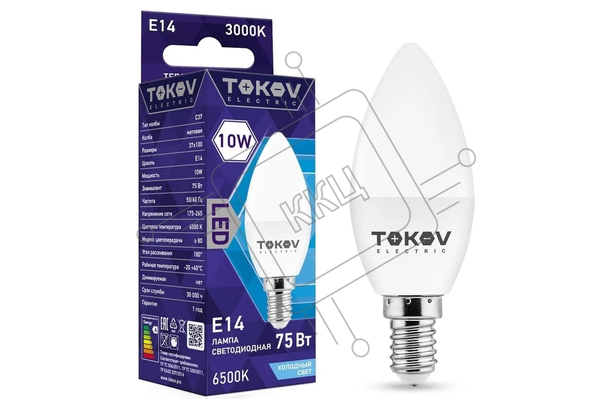 Лампа светодиодная TOKOV ELECTRIC 10Вт С37 6500К Е14 176-264В