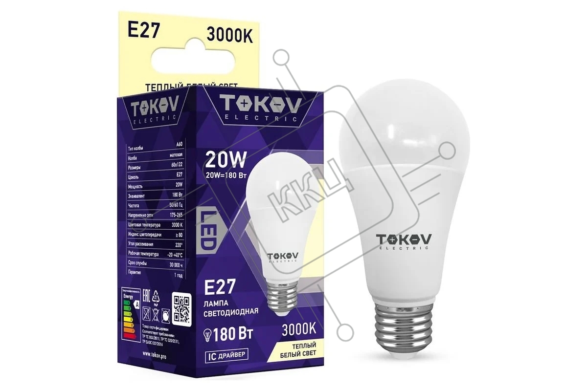 Лампа светодиодная TOKOV ELECTRIC 20Вт А60 3000К Е27 176-264В