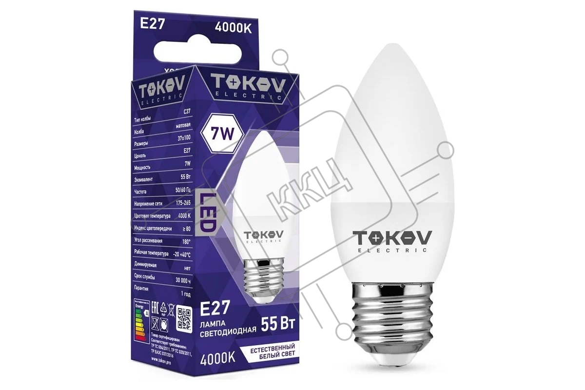 Лампа светодиодная TOKOV ELECTRIC 7Вт С37 4000К Е27 176-264В