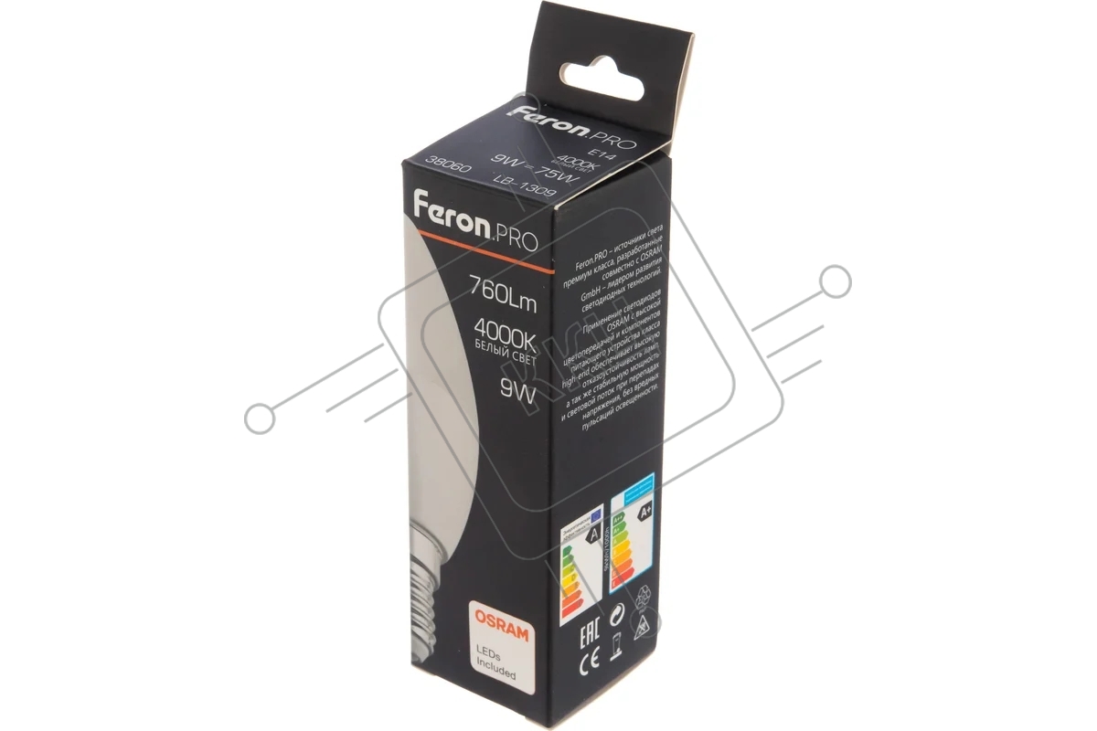 Лампа светодиодная FERON PRO LB-1309 (38060) 9 вт Е14 белый матовая свеча