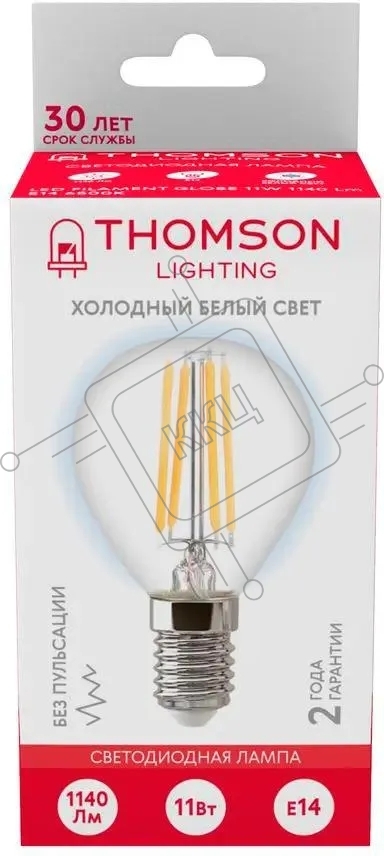 Лампа светодиодная филаментная Thomson TH-B2338 E14, шар, 11Вт, 6500К, белый холодный, 1 шт.