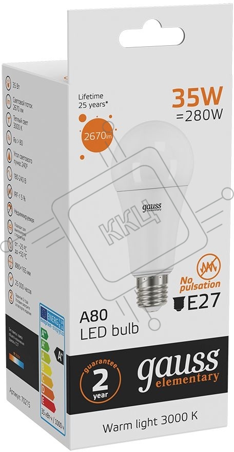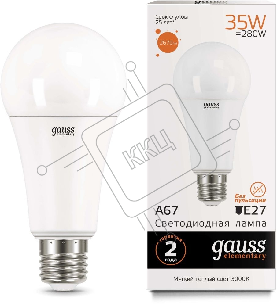 Лампа светодиодная Gauss Elementary A67 35Вт 3000К E27 2670лм