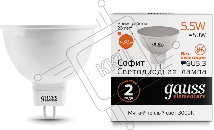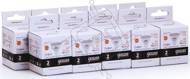 Лампа светодиодная Gauss Elementary MR16 5.5Вт цок.:GU5.3 спот 220B 3000K св.свеч.белый.теп. (упак.:10шт)