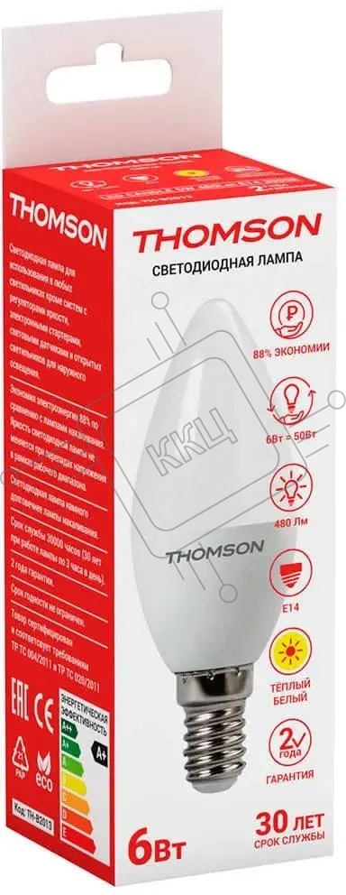 Лампа светодиодная Hiper THOMSON LED CANDLE 6W 480Lm E14 3000K TH-B2013
