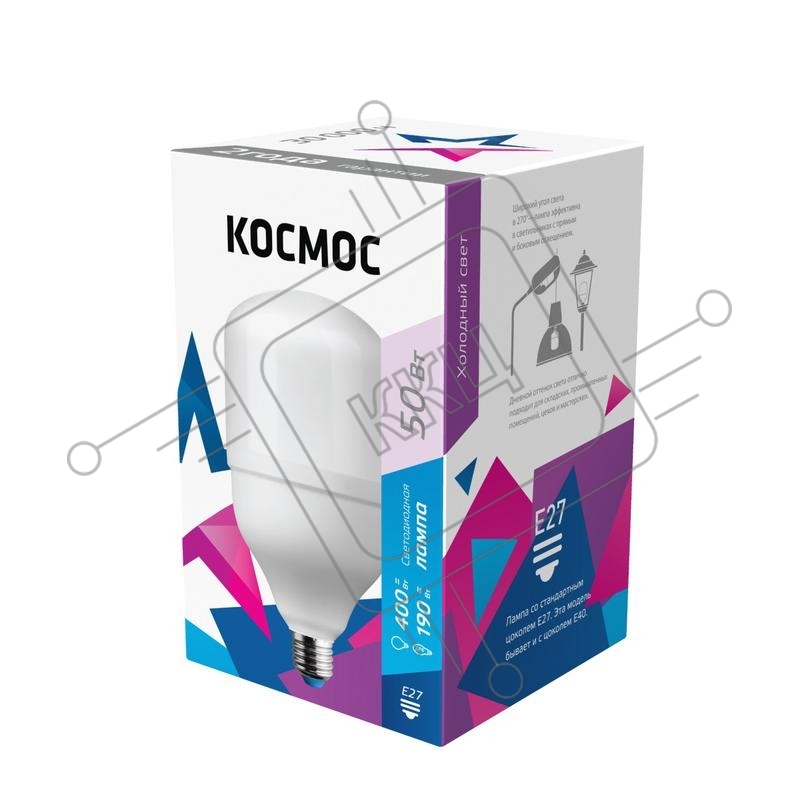 Лампа светодиодная высокомощная Космос HWLED 50Вт 220В E27 6500К (переходник с E27 на E40 в комплекте)
