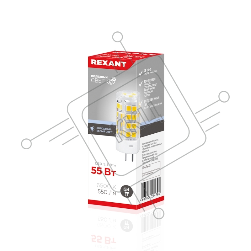 Лампа светодиодная Rexant капсульного типа JD-CORN Rexant G4 230 В 5,5 Вт 6500 K холодный свет (поликарбонат)