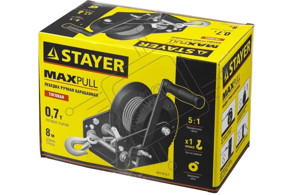 Лебедка механическая STAYER "MASTER" 43112-0.7 ручная барабанная тяговая тросовая 0.7т 8м