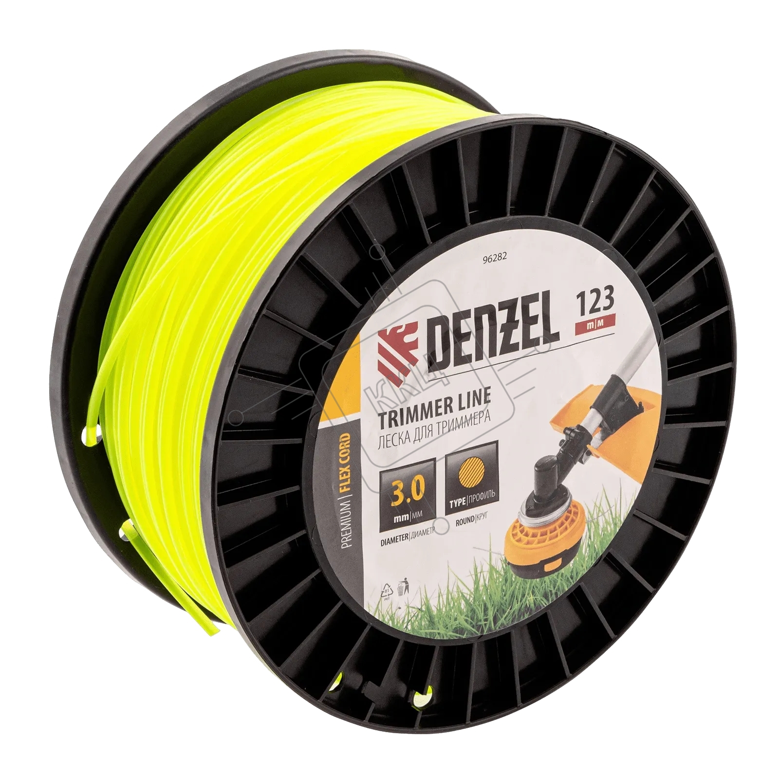 Леска для триммера Denzel круглая, 3,0мм х 123м, на DIN катушке FLEX CORD