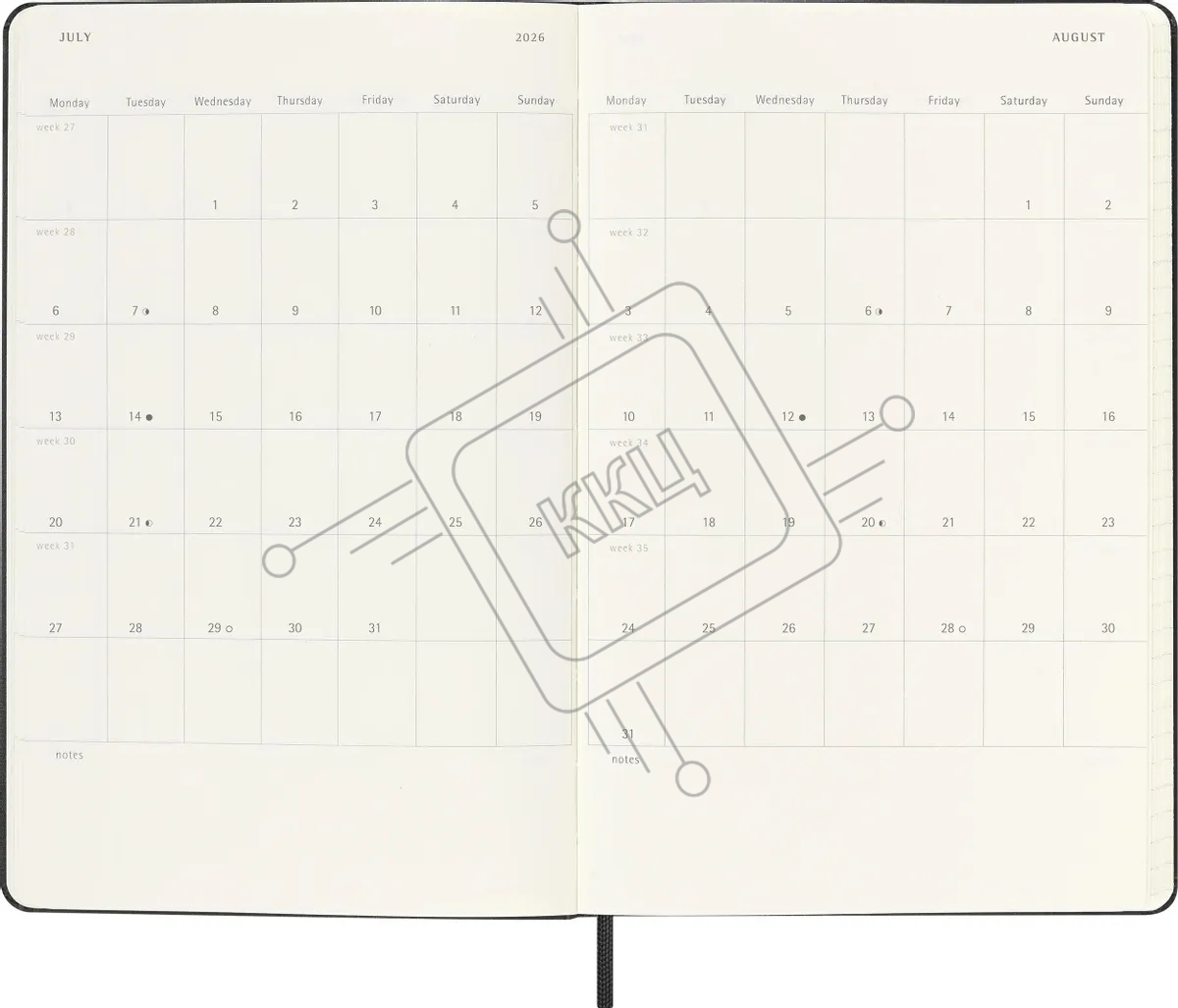 Еженедельник Moleskine ACADEMIC WKNT LGH 130х210 мм, датированный на 18 месяцев, 208 страниц, фиксирующая резинка черный