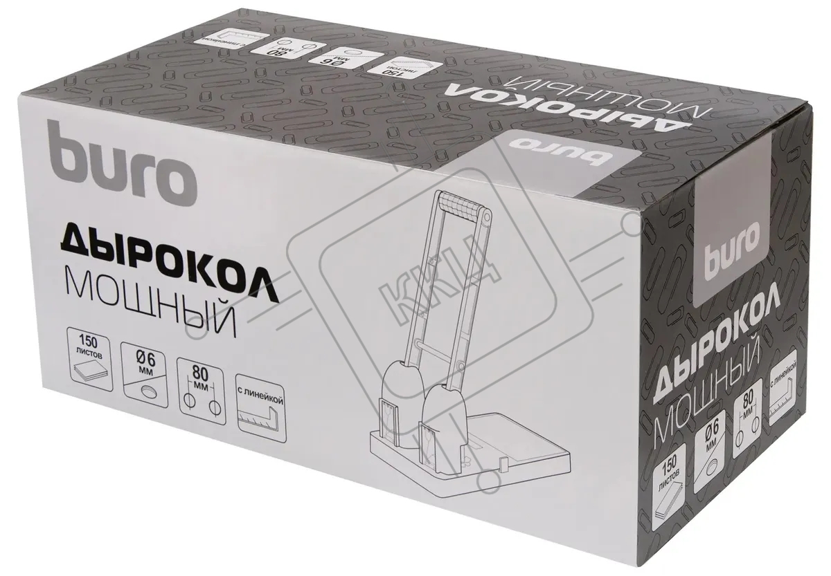 Дырокол Buro Force макс.:150лист. пластик черный отв.:2 с линейкой