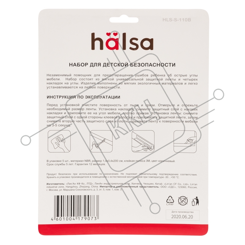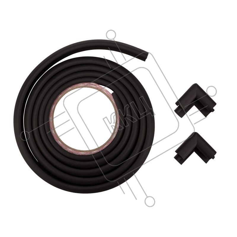 Набор: тонкая мягкая универсальная лента для крепления на острые края (NBR,14*4*2000 мм) + 4 мягкие насадки-протектора "уголки", коричневый