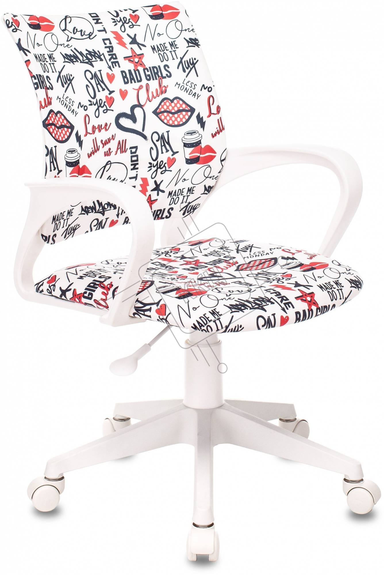 Кресло детское Бюрократ BUROKIDS 1 W мультиколор красные губы крестов. пластик пластик белый