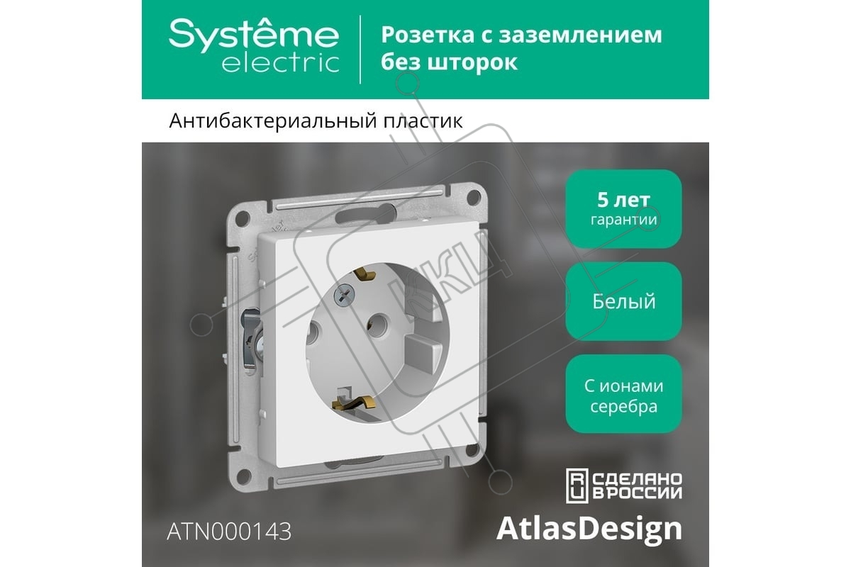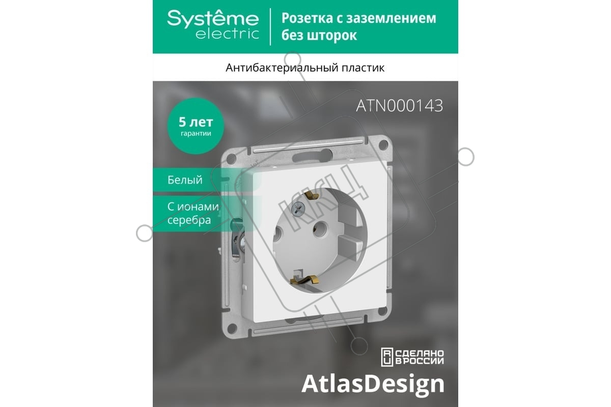 Механизм розетки 1-м СП AtlasDesign с заземл. 16А белый, SchE ATN000143