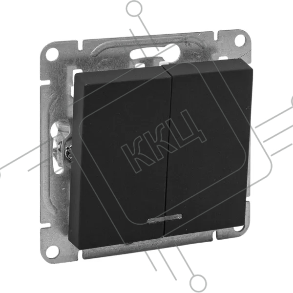 Механизм выключателя EKF UP1-SWB-24 двухклавишный, с подсветкой, черный Эпика