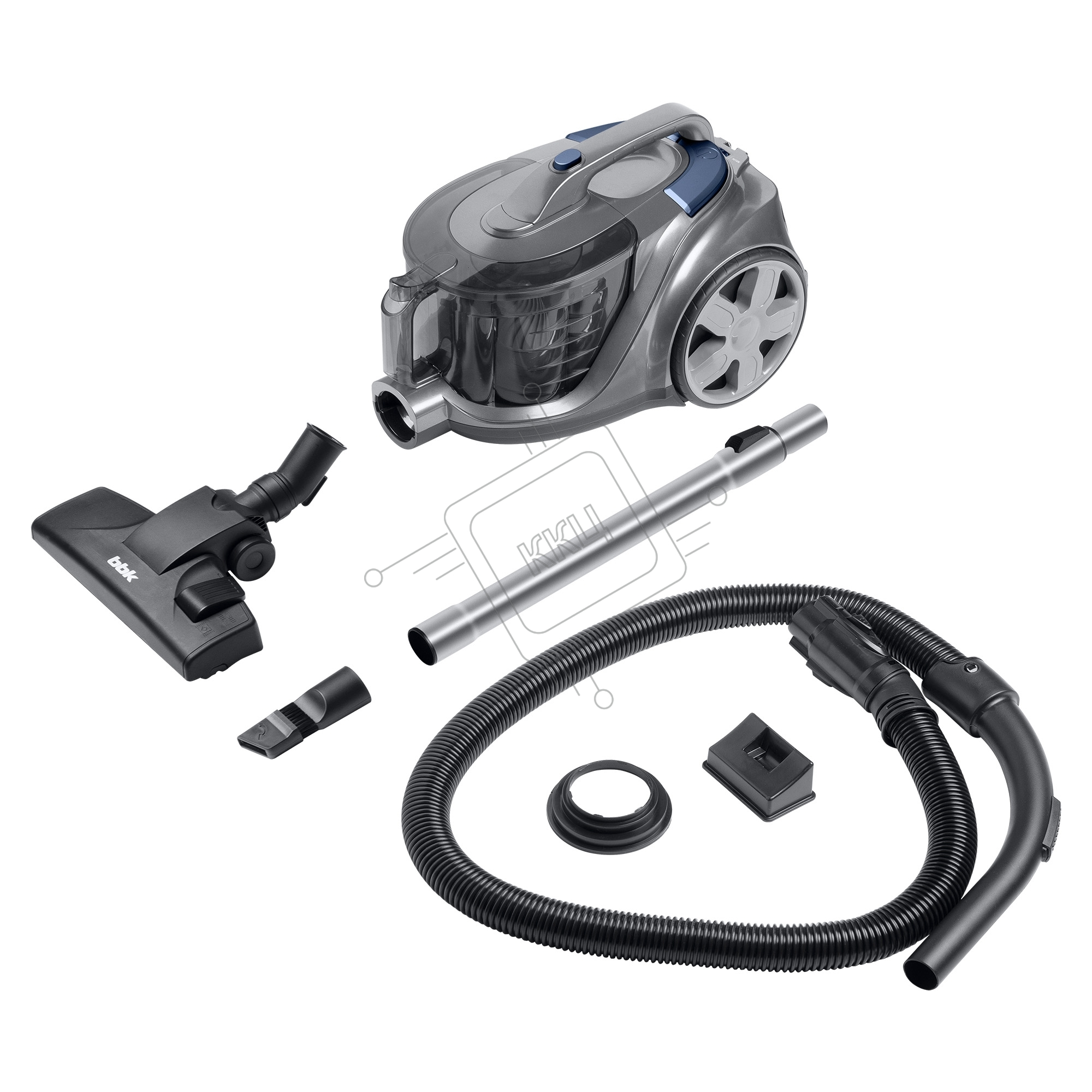 Пылесос BBK BV1900 серый/синий, 400/2200 Вт, уборка сухая, пылесборник контейнер 3 л