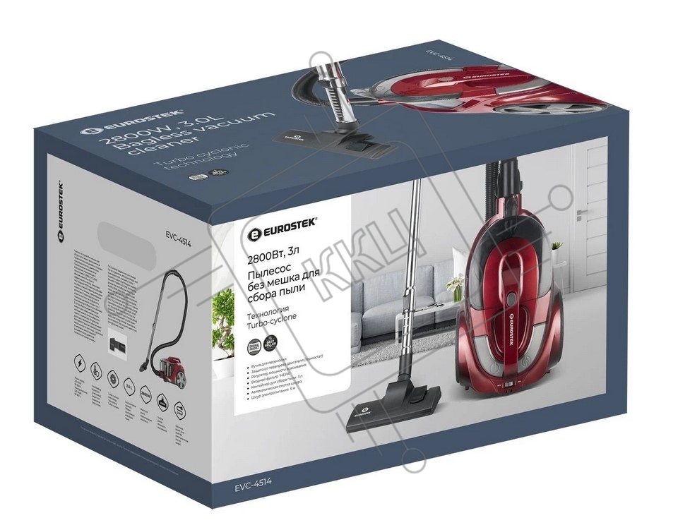 Пылесос Eurostek EVC-4514 красный, 500/2800 Вт, уборка сухая, пылесборник контейнер 3 л