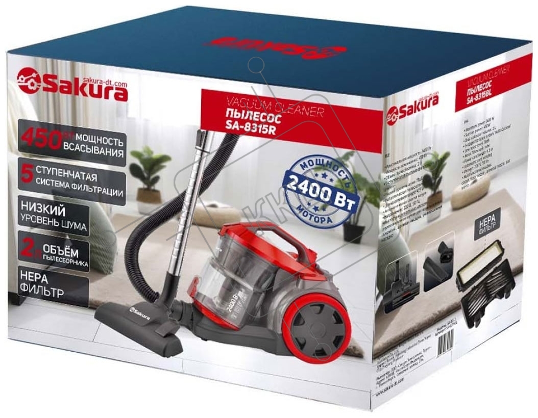 Пылесос Sakura SA-8315R красный/черный, 450/2400 Вт, уборка сухая, пылесборник контейнер, 2 л