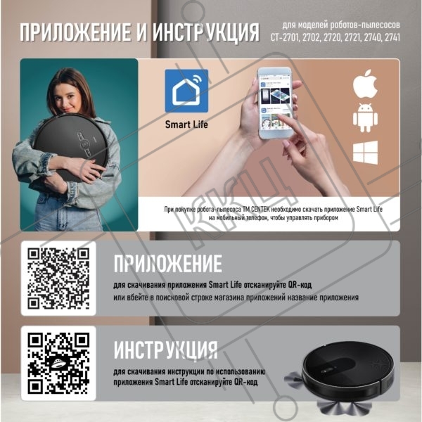 Робот-пылесос Centek CT-2720 черный/синий, 2600 мAч Li-Ion, уборка сухая/влажная, пылесборник контейнер 0.68 л