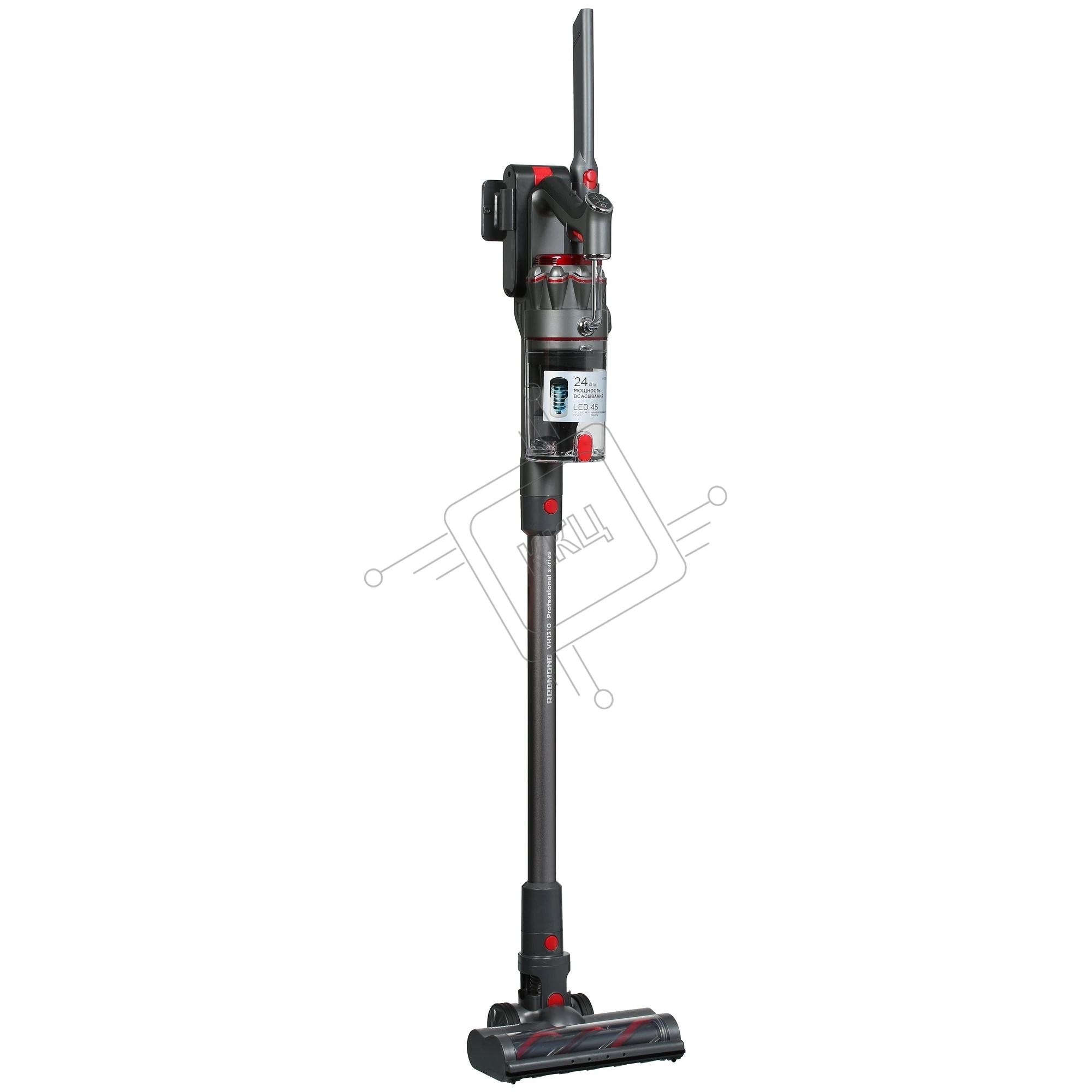 Пылесос вертикальный Redmond VH1310 серый, питание от аккумулятора, 300 Вт, уборка сухая, пылесборник 0.5 л, работа от АКБ max 45 мин