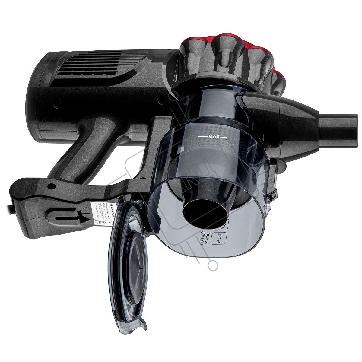 Пылесос вертикальный BRAYER BR4268 серый/красный, питание от сети, 185 Вт, уборка сухая, пылесборник 0,8 л