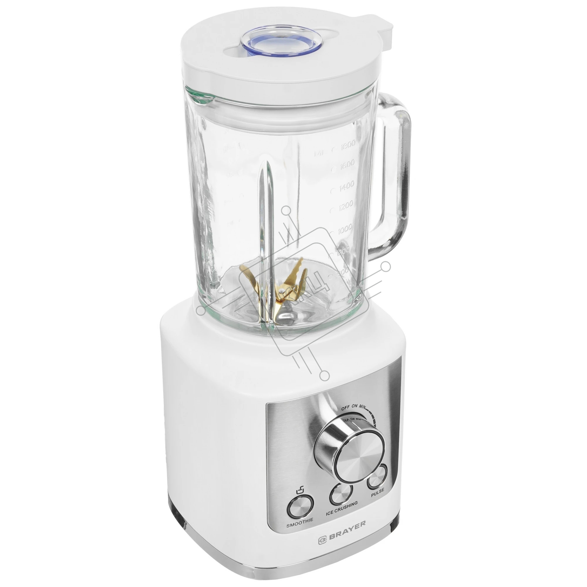 Блендер стационарный BRAYER BR1200WH 1600 Вт, стекл., 1,8 л, 6 титан. ножей, импульс, колка льда