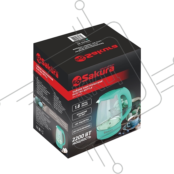 Чайник электрический Sakura SA-2733GR мятный, 1,7 л., 2200 Вт