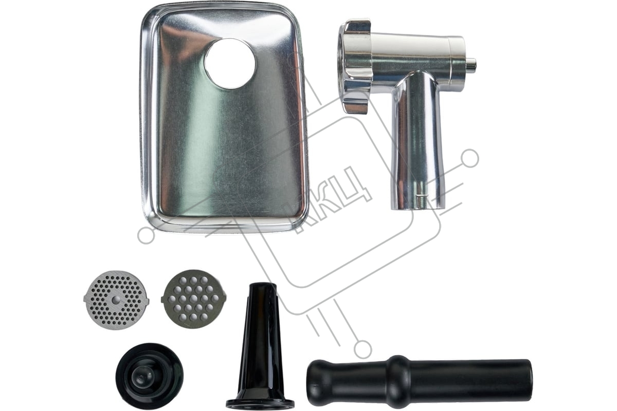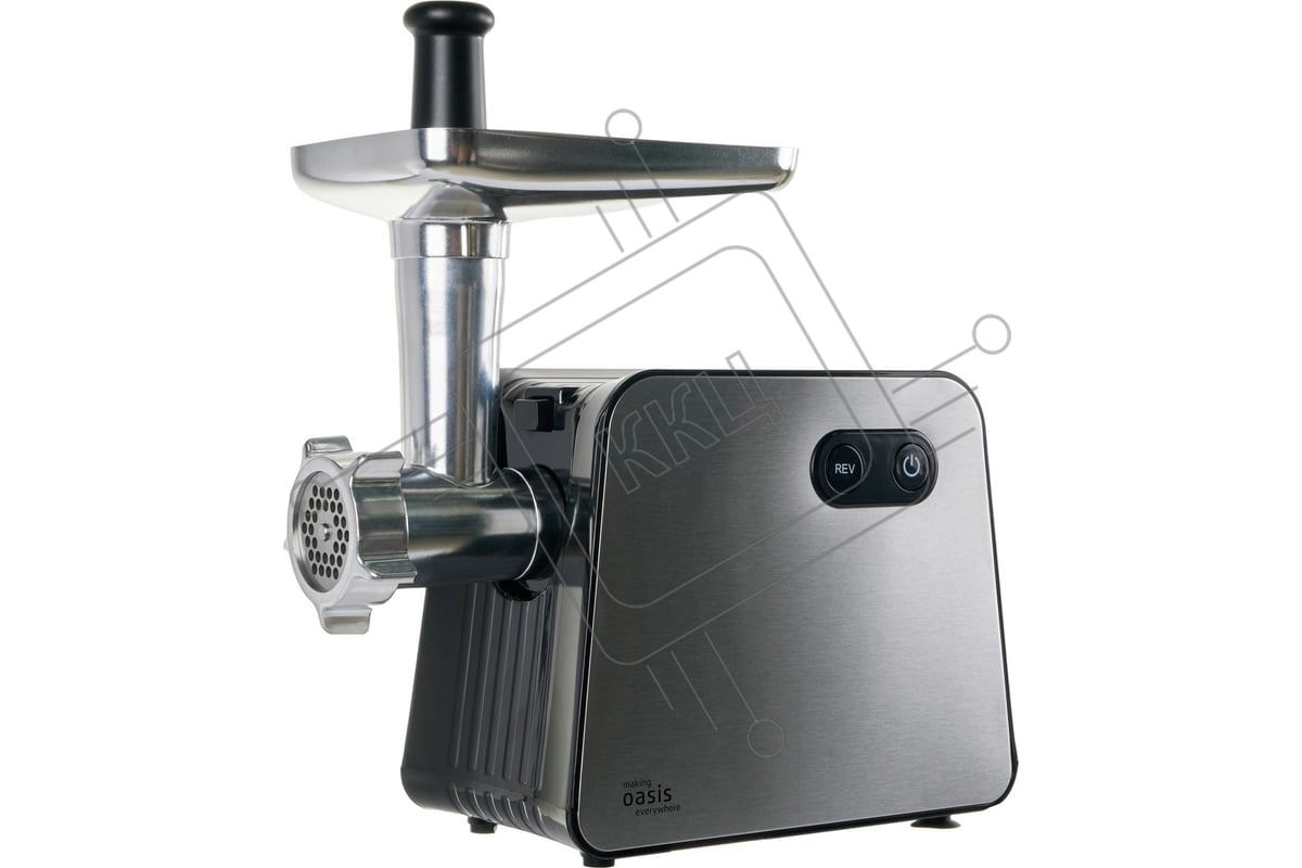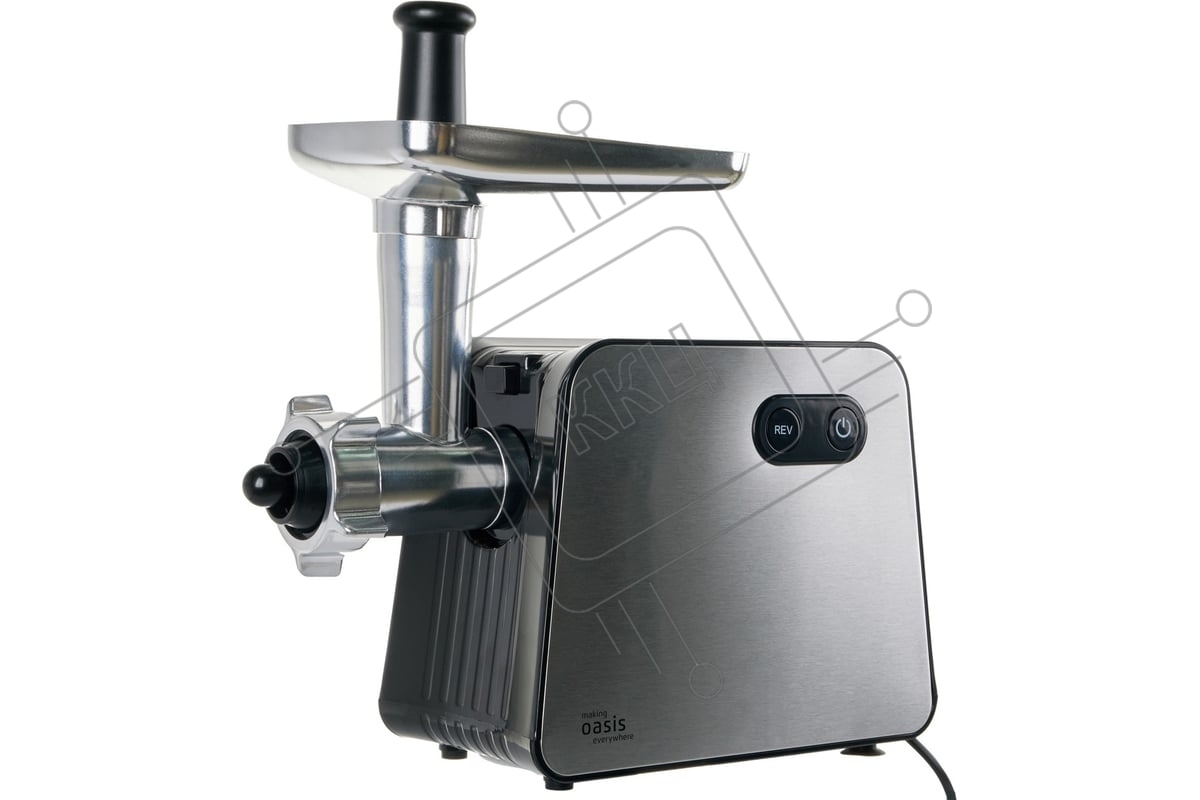 Мясорубка электрическая OASIS MG-TK2 серый, 2000 Вт, 2.5 кг/мин, реверс, защита от перегрузки, металлический лоток, насадки - 5