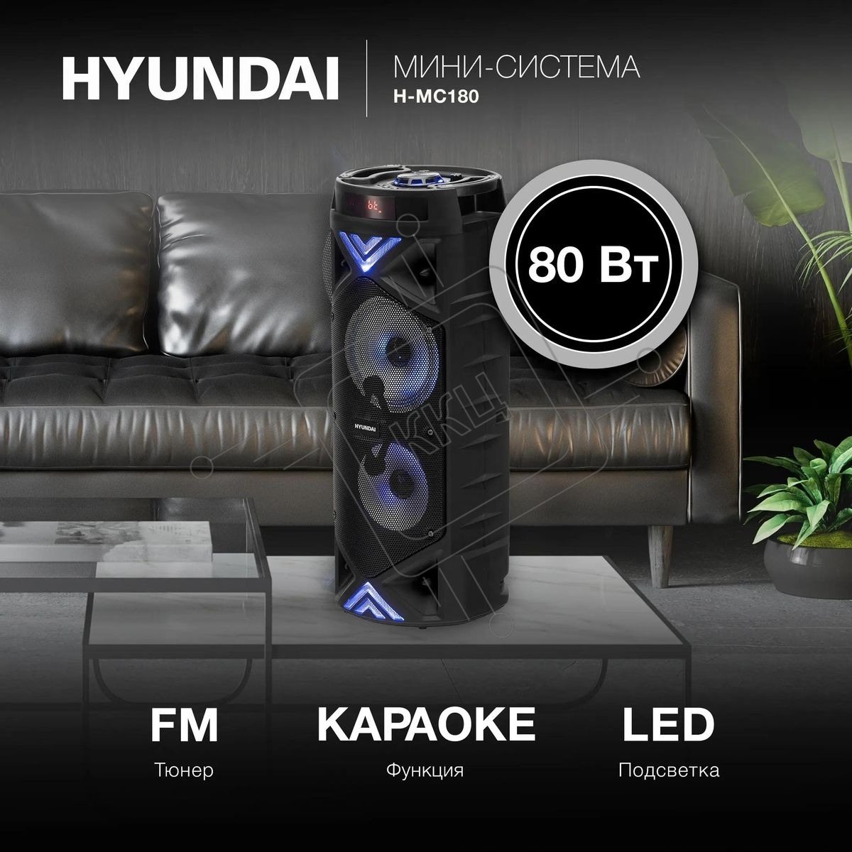 Минисистема Hyundai H-MC180 черный 80Вт/FM/USB/BT/SD/MMC