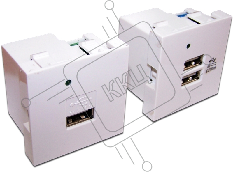 Модуль USB-зарядки, 2 порта, без шторки, 2.1A/5V, 45x45, белый