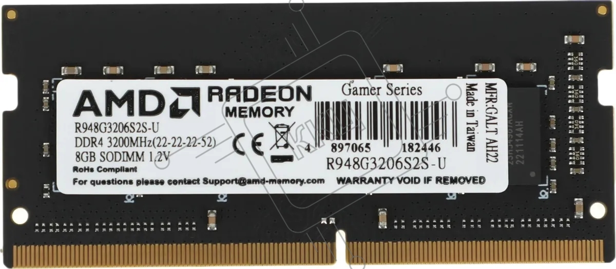 Оперативная память AMD Radeon R9, DDR4, 8Gb (1x8Gb), 3200MHz, CL22, SO-DIMM, OEM