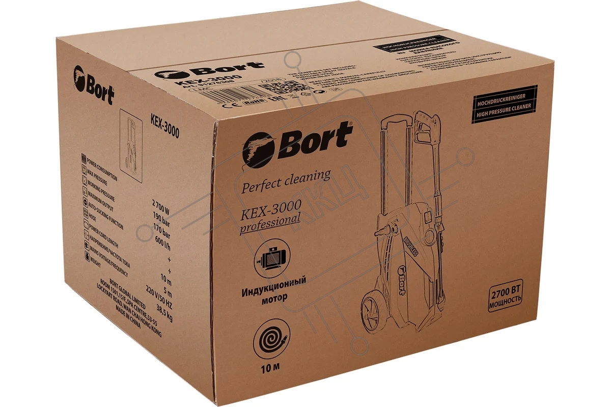 Мойка высокого давления Bort KEX-3000 91276308 3000 Вт, максимальное давление 160 бар, рабочее давление 130 бар, 7,5 л/мин, 7.3 кг, набор аксессуаров 3 шт