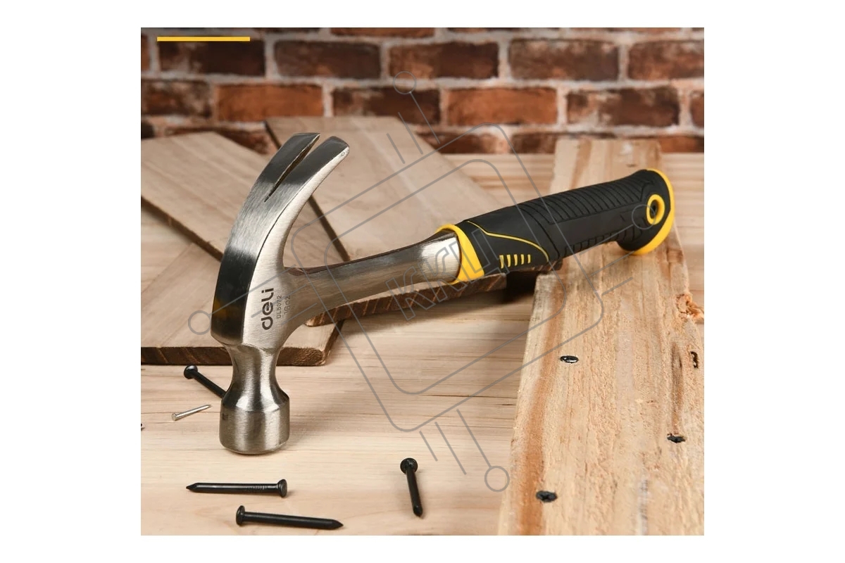 Молоток-гвоздодер Deli DL5072 450 гр, цельнокованный, прорезиненныя рукоять