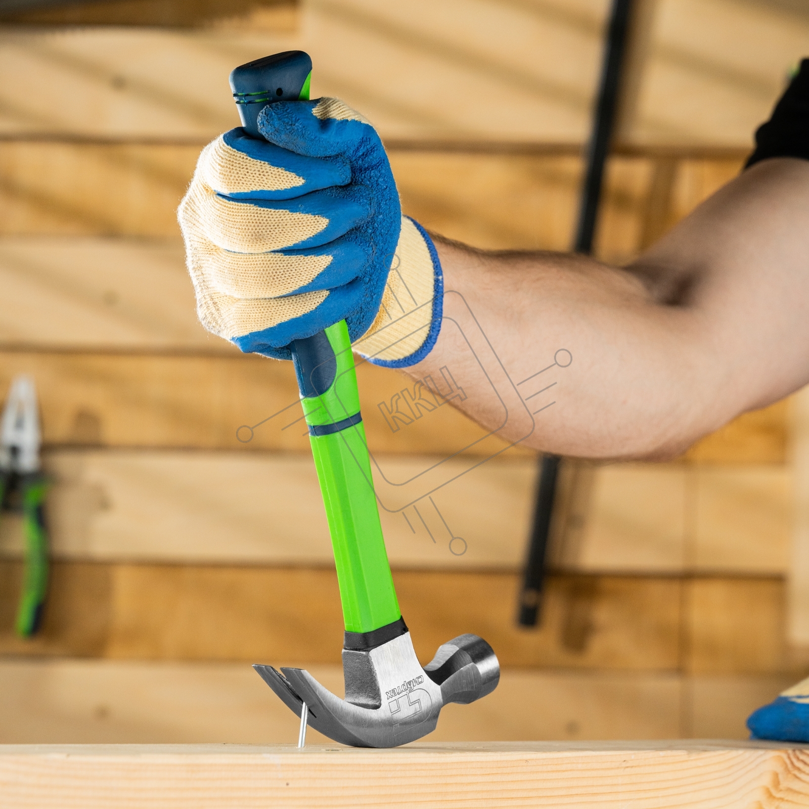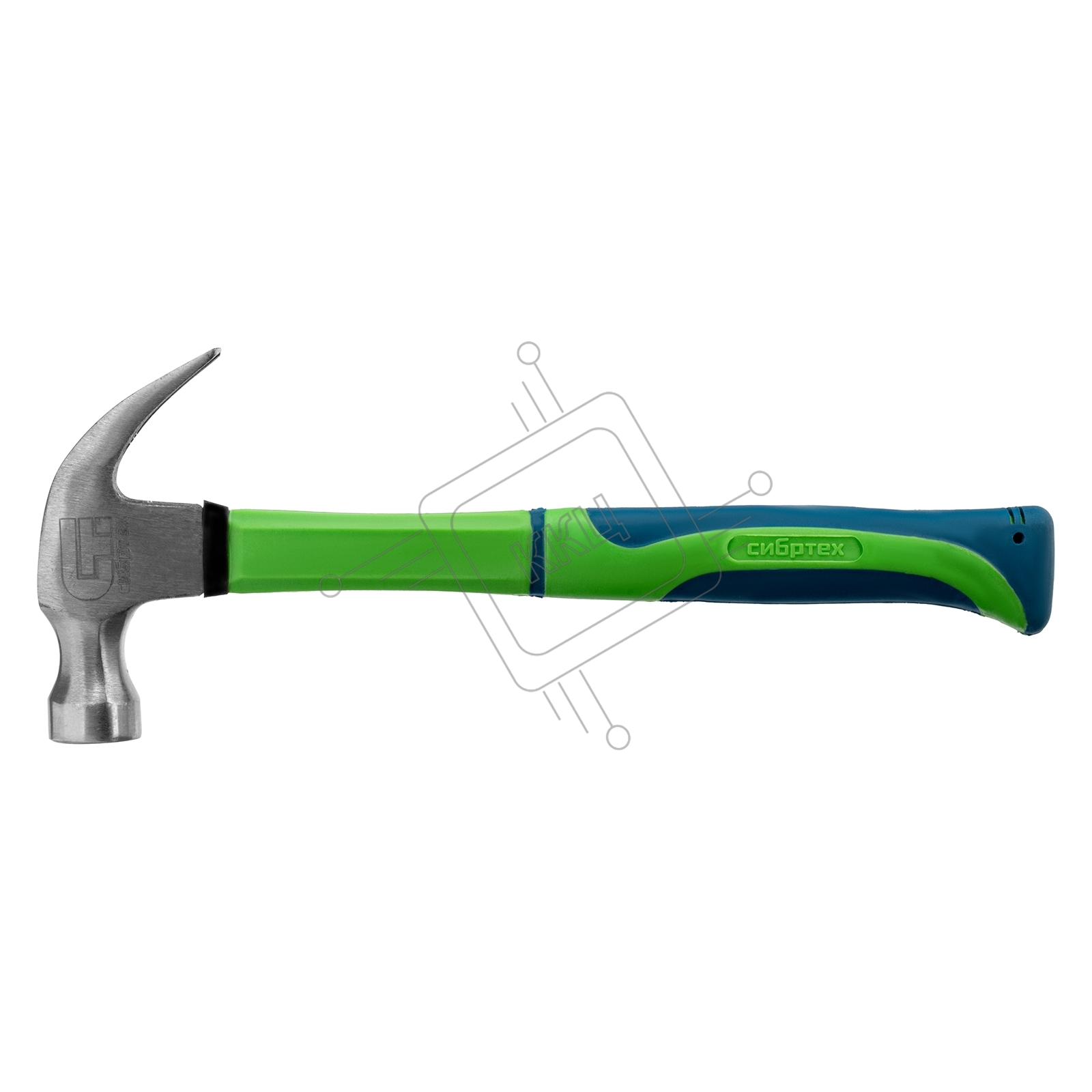 Молоток-гвоздодер Сибртех 450 г, фибергласовая обрезиненная рукоятка
