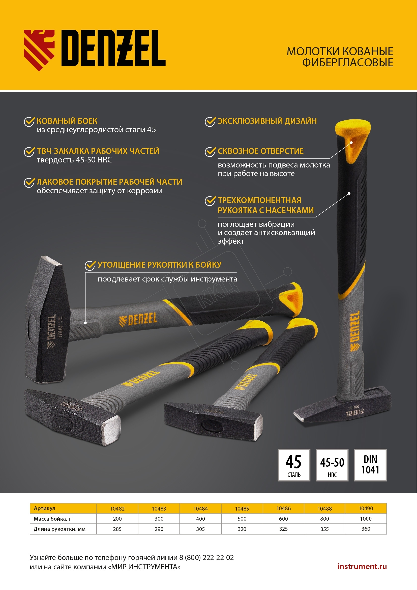 Молоток слесарный, 200 г, кованый, фибергласовая рукоятка c TPR покрытием // Denzel