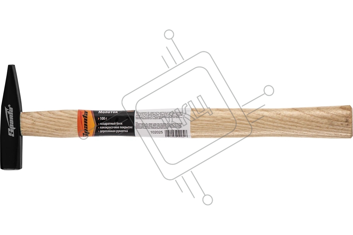 Молоток Sparta 102025 слесарный, 100 г, квадратный боек, деревянная рукоятка