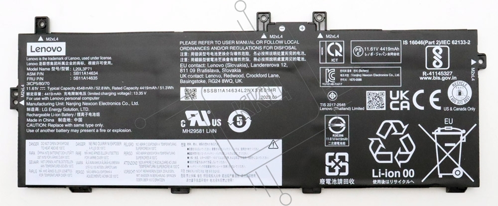 Аккумуляторная батарея для ноутбука Lenovo X13 gen 3 (L20L3P71) 11.61V. 52.8Wh