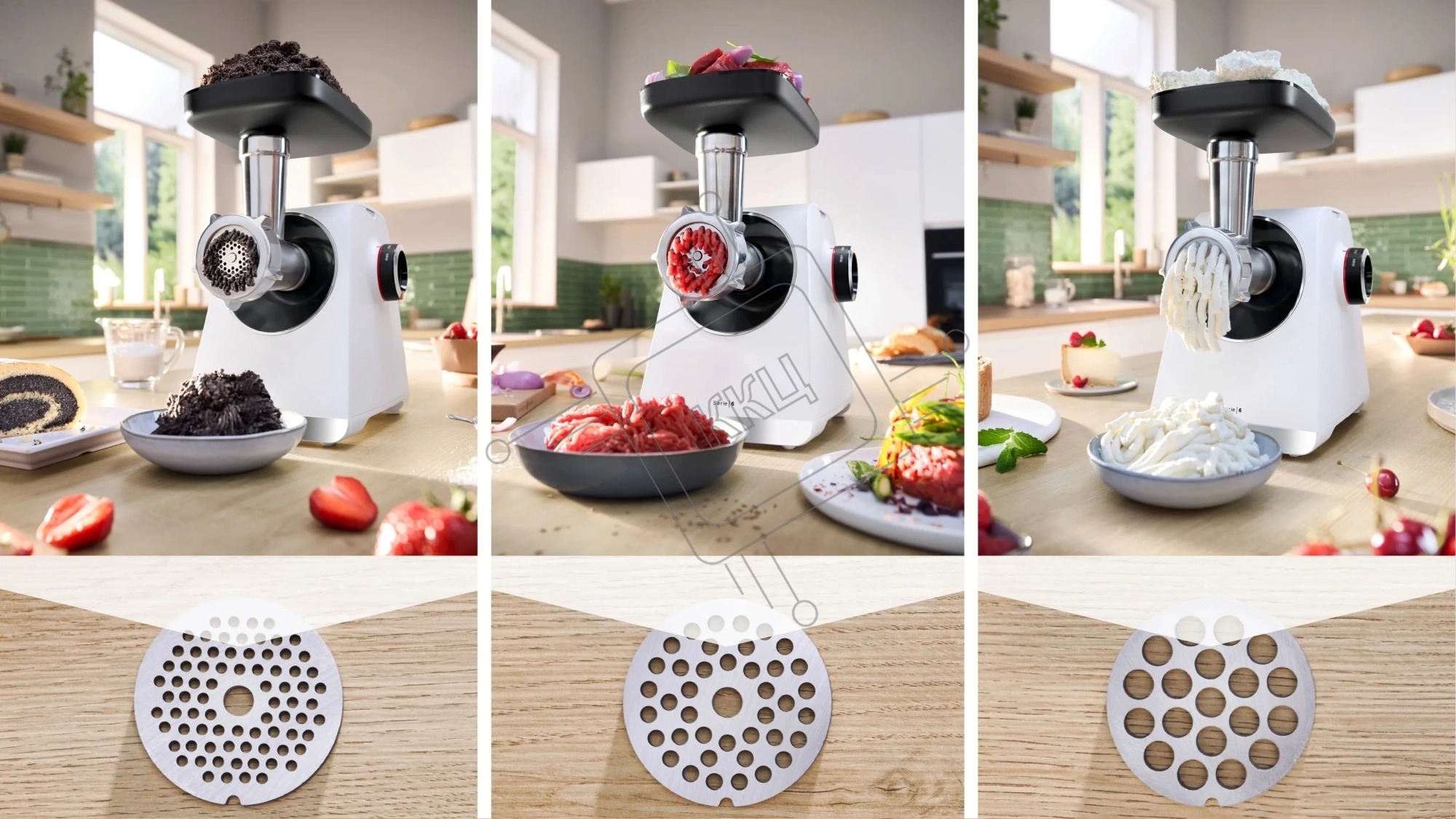 Мясорубка электрическая Bosch MFWS609W белый/черный, 2100 Вт, 3.5 кг/мин, реверс, насадки - 4