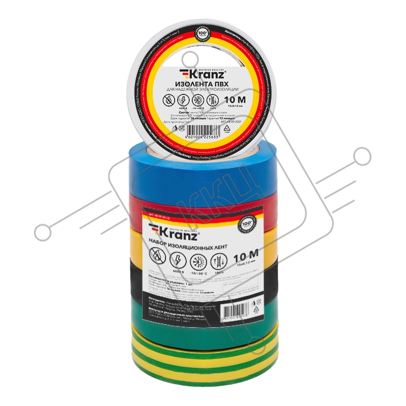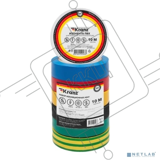 Набор изоляционных лент KRANZ 0.13х15 мм, 10 м, 7 цветов