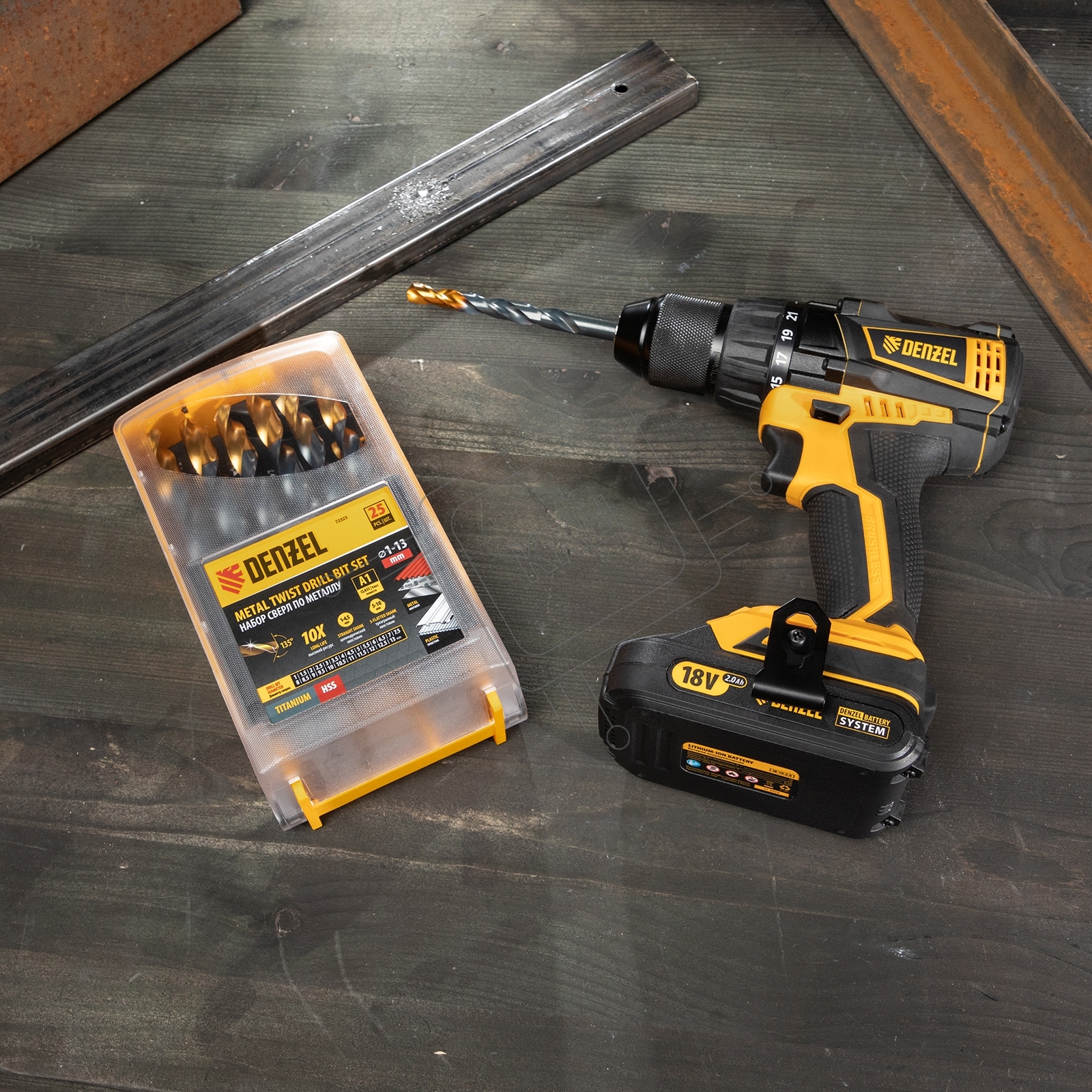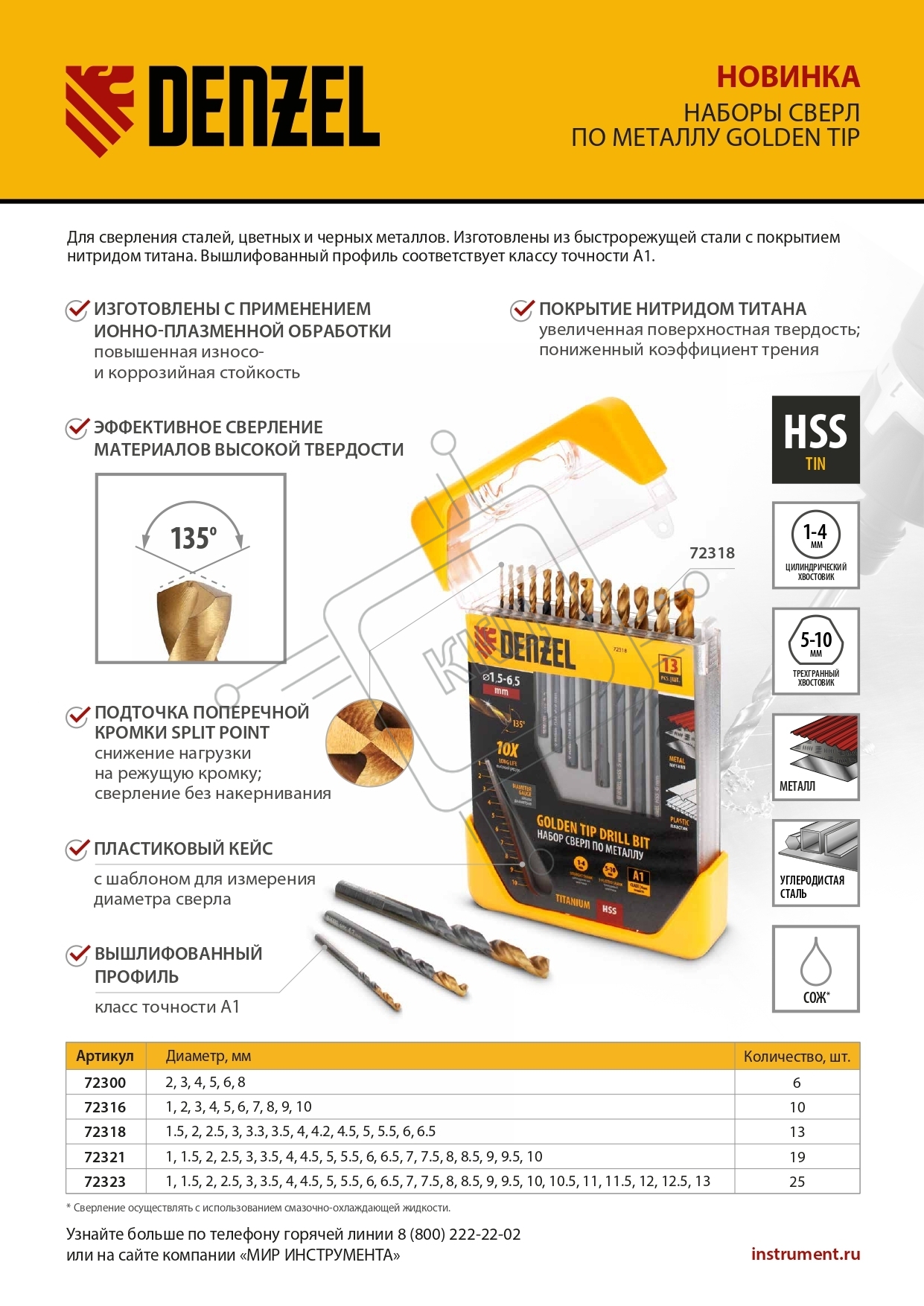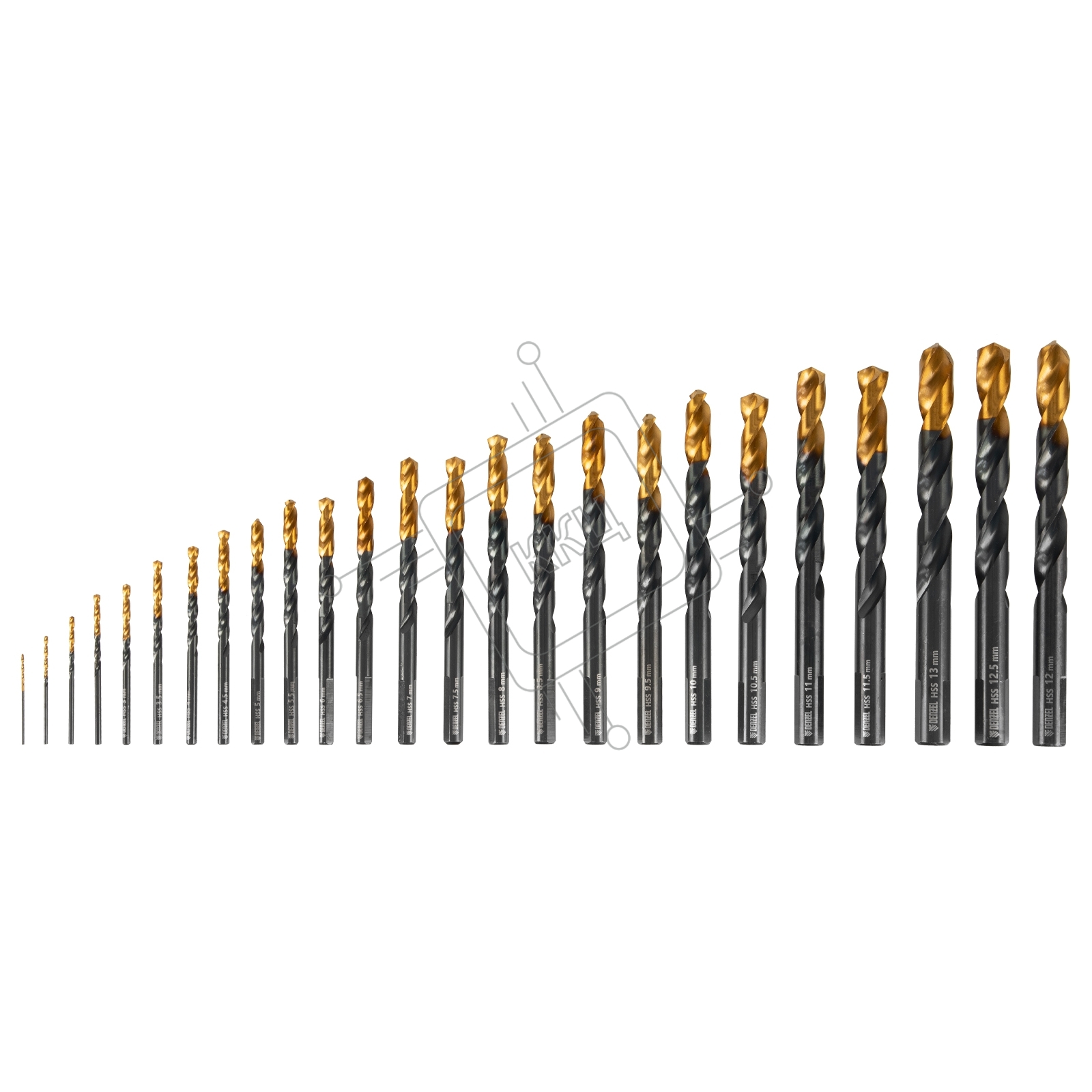 Набор сверл по металлу, 1-13 мм, HSS-Tin, Golden Tip, 25 шт Denzel