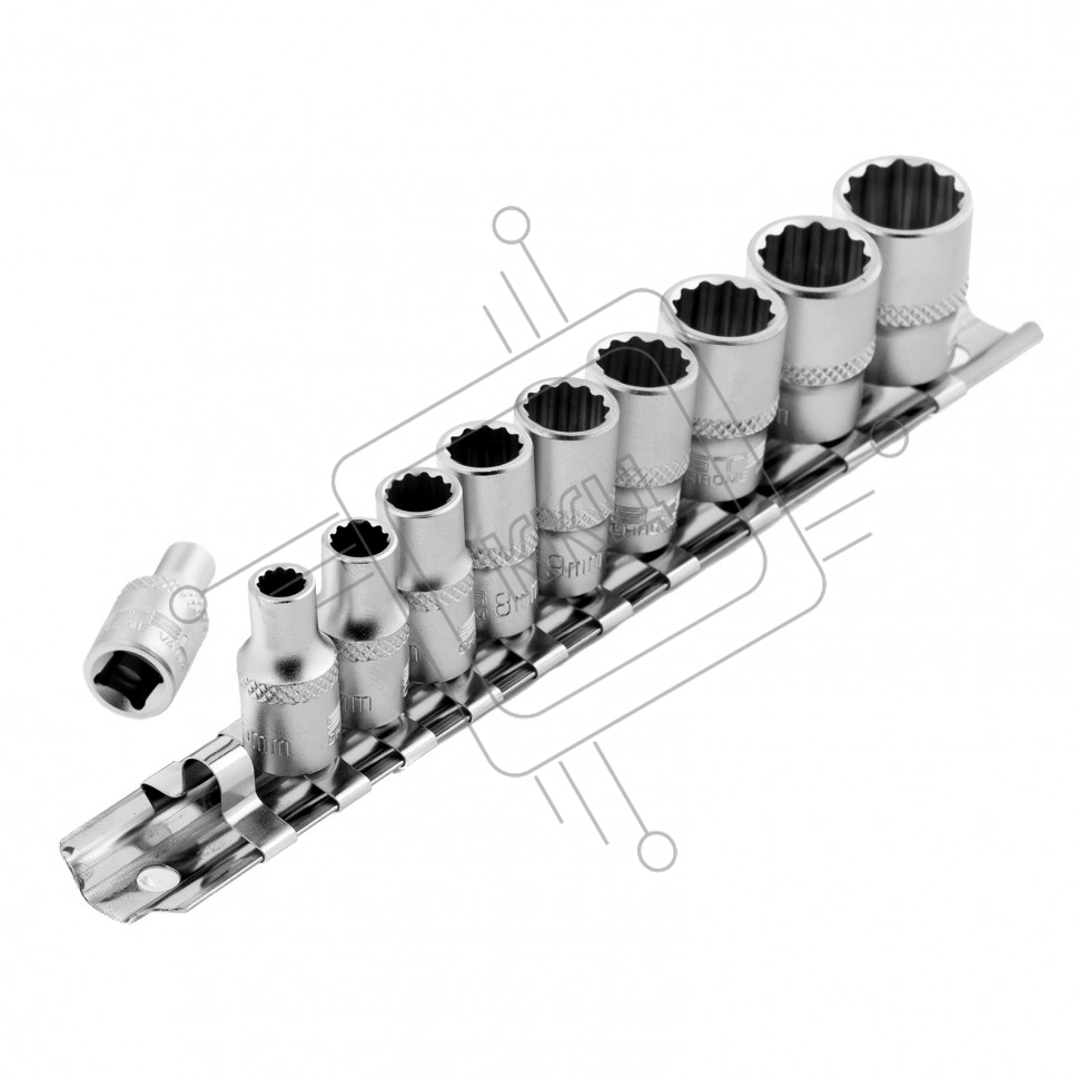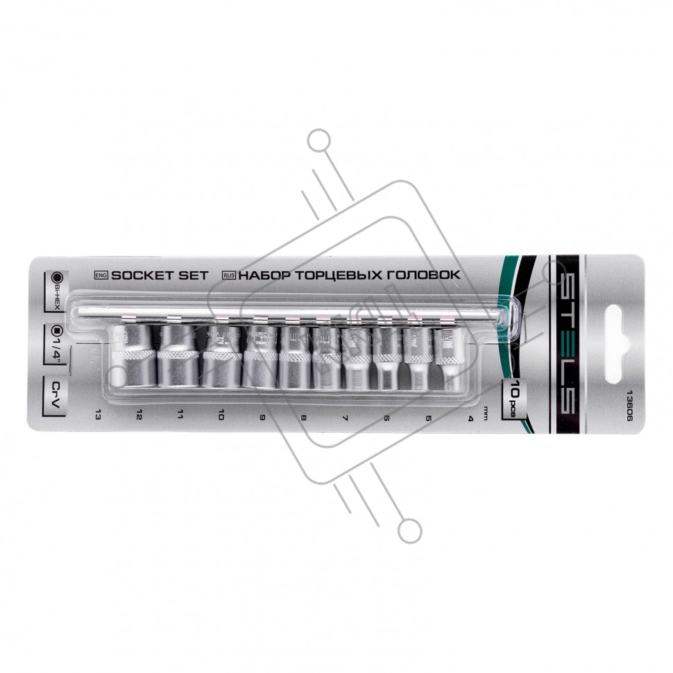 Набор торцевых головок, 1/4", 12-ти гр., CrV, 10шт., 4-13мм Stels