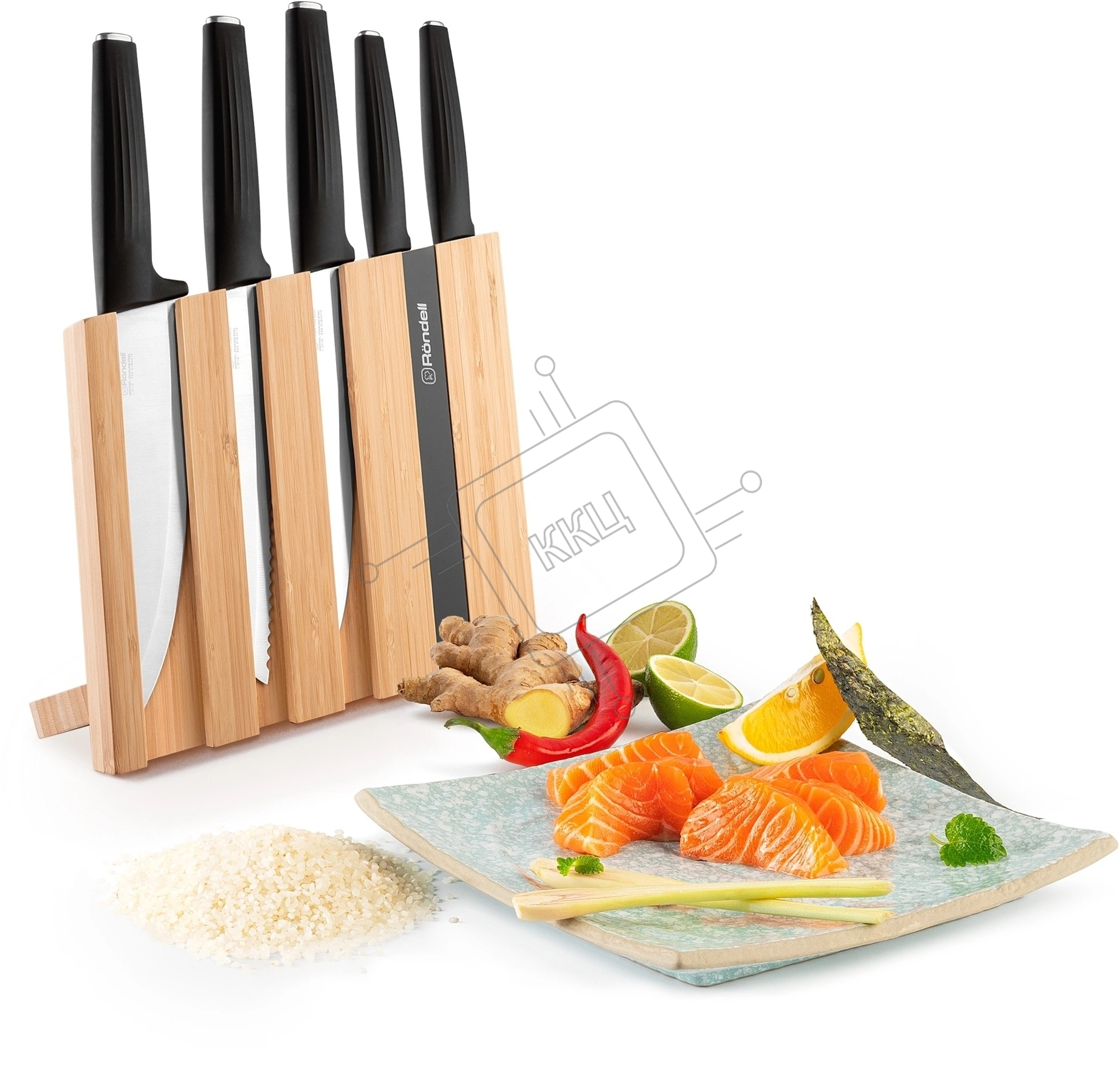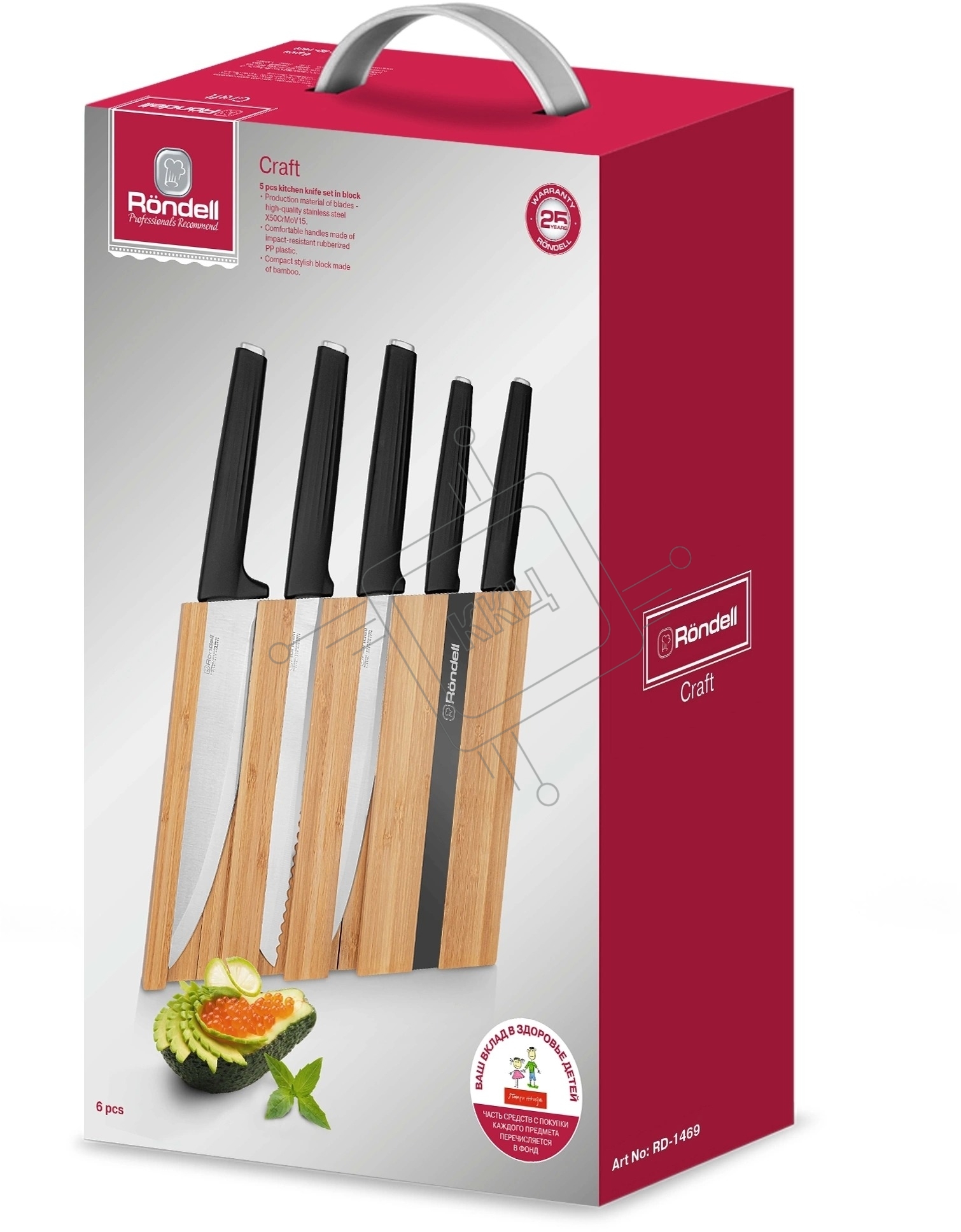 Набор ножей кухонных Rondell RD-1469 компл.:6предм. с подставкой разноцветный подар.коробка