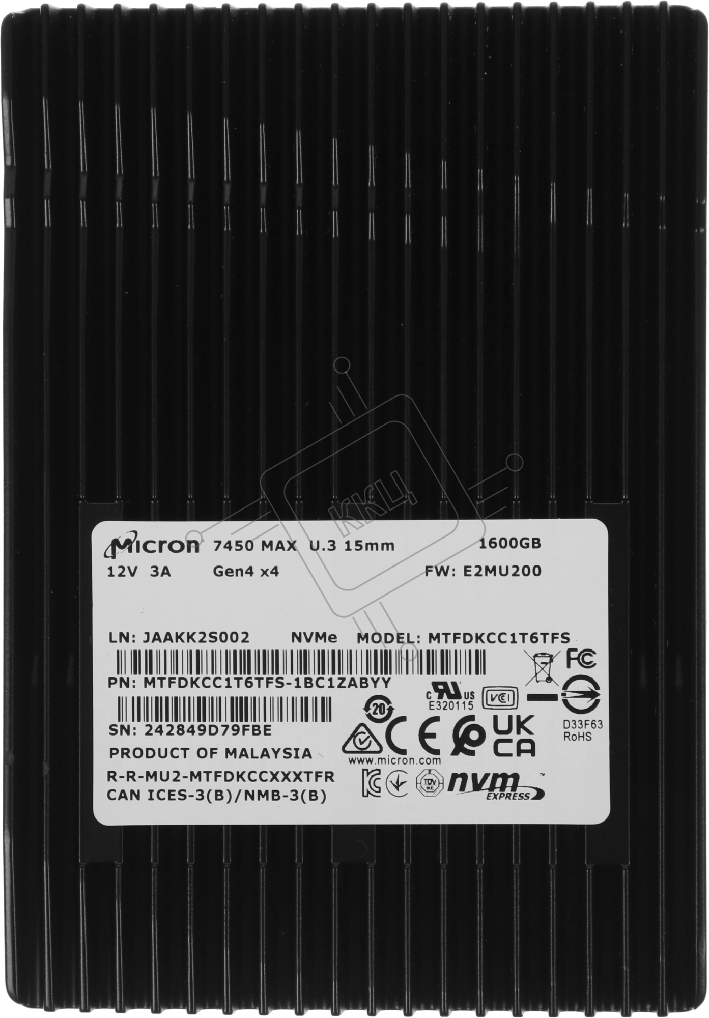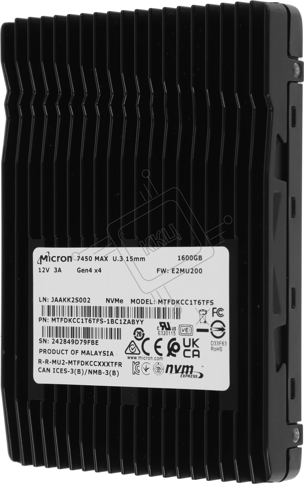 Накопитель SSD Micron 7450 Max, 1600Gb, 2.5", U.3, R/W 6800/2700