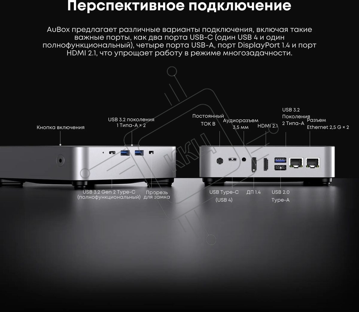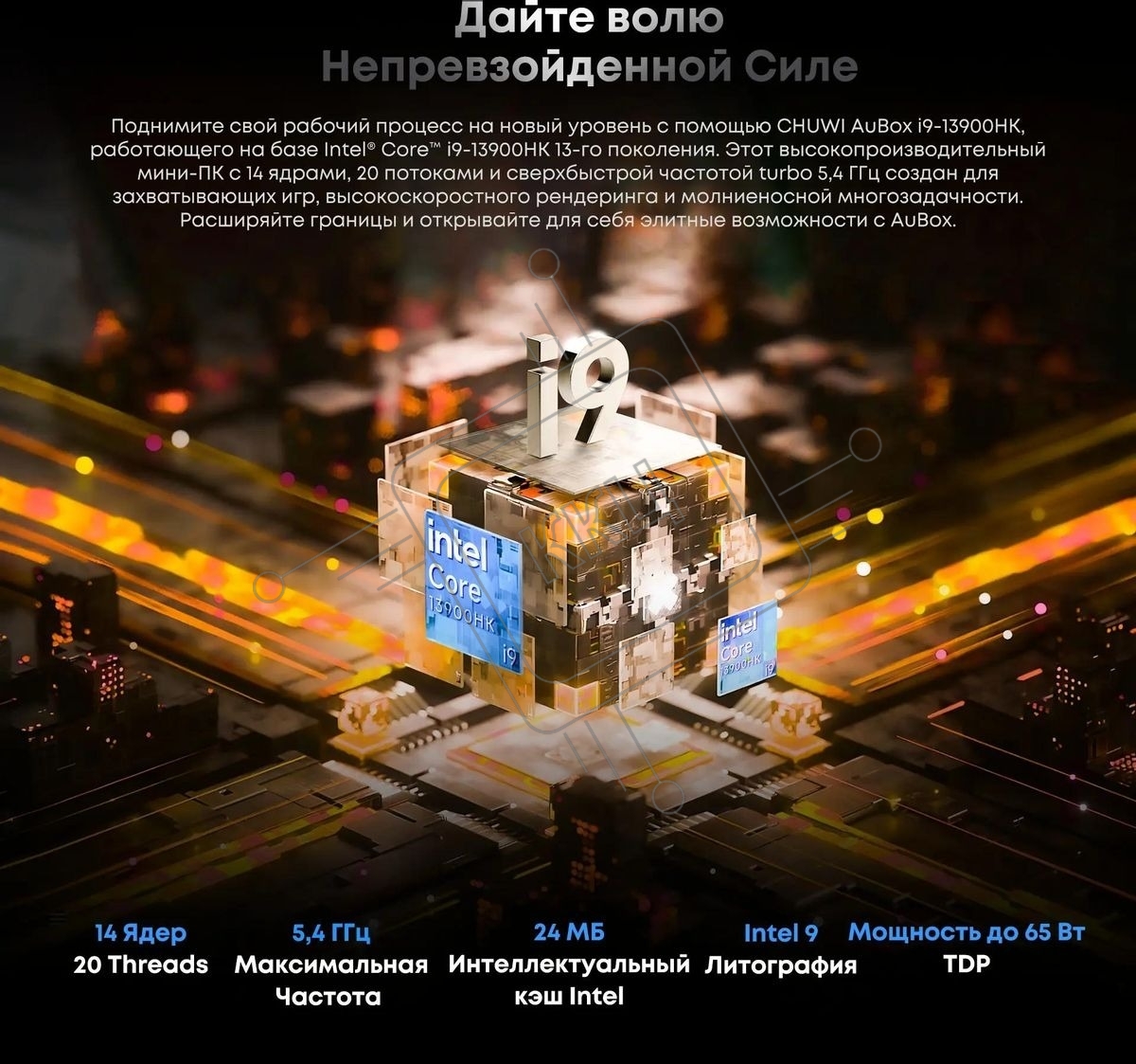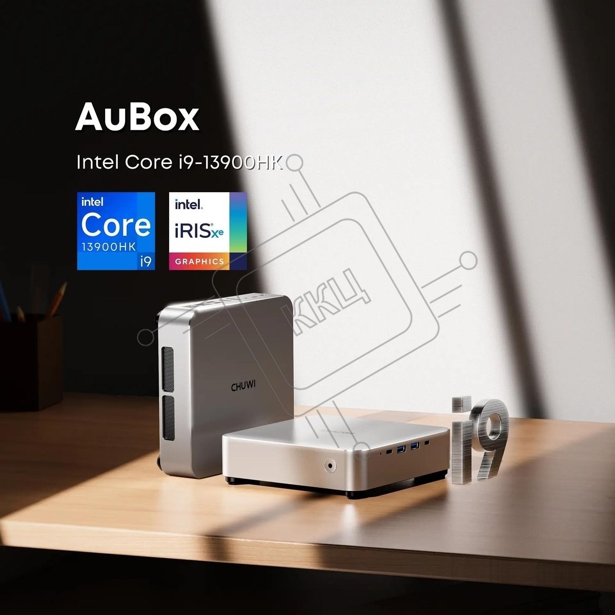 Мини ПК Chuwi AuBox Core i9 13900HK (2.6) 16Gb SSD 512Gb Iris Xe Windows 11 Pro 2x2.5GbitEth WiFi BT 120W серебристый/черный